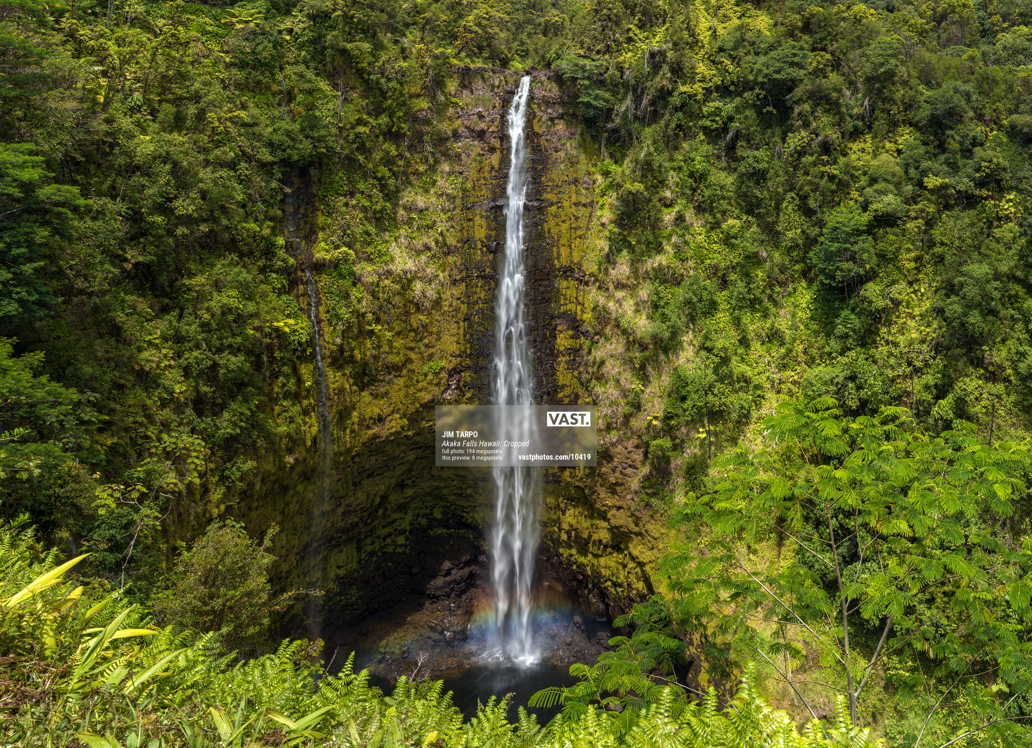 Adding to the allure of this VAST photo is the rainbow that appears at the base of the falls. Hawaii is such a magically beautiful place and this rainbow is further testament to that.
