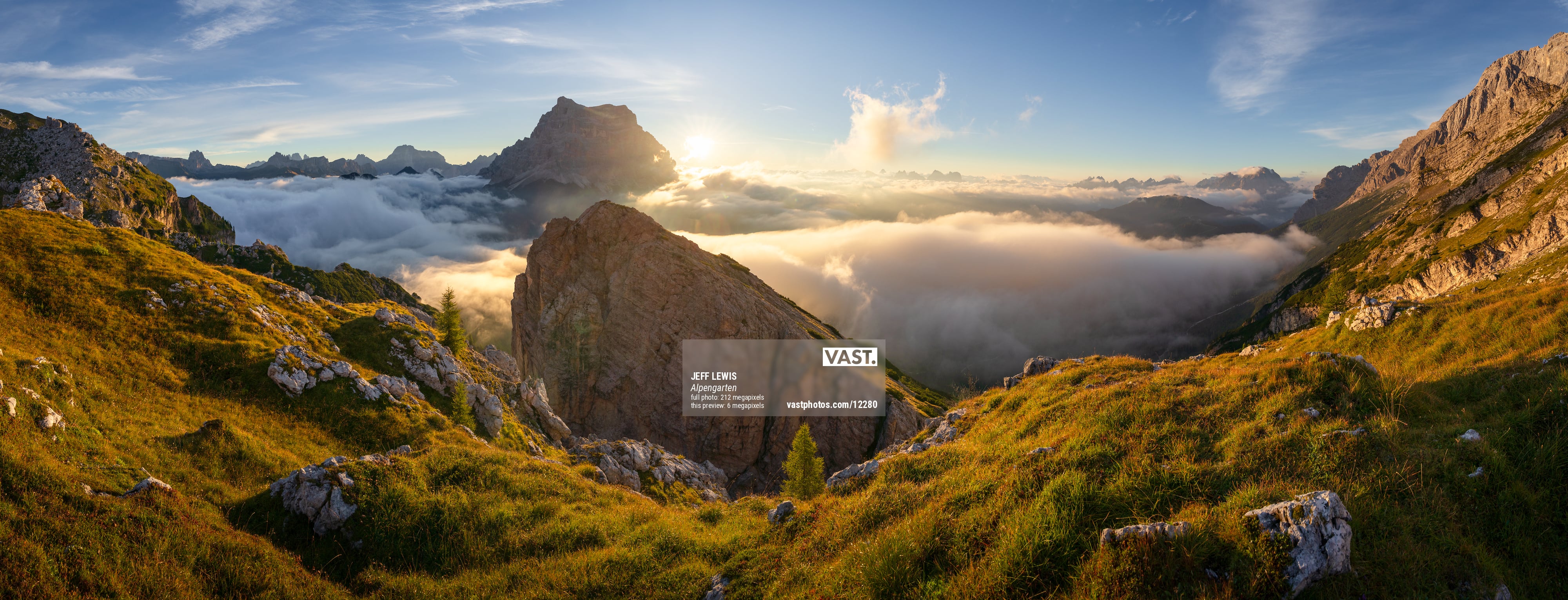 As a lush mountain region, the weather was everchanging and fickle -- there were times when we couldn't see any mountains for days at a time. But all storms break eventually, as long as you're patient! This is one of the photos I was able to capture on a lovely foggy morning, from one of my favorite rifigios that we were able to spend the night in. The fog was changing every moment, and the sunrise light brought everything together!