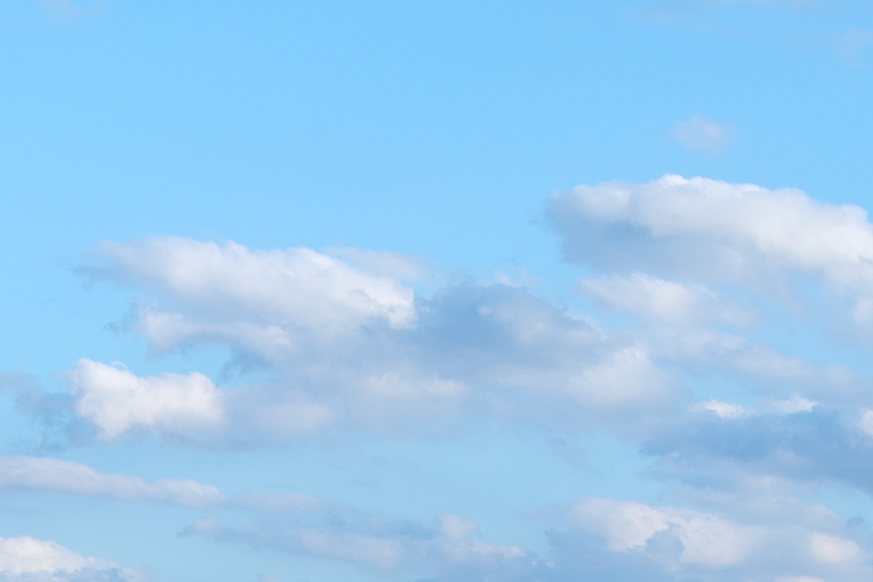 This panoramic image presents a pristine blue sky adorned with scattered, fluffy cumulus clouds, creating a tranquil and uplifting scene. The clouds appear soft and weightless, floating gracefully across the vibrant azure backdrop. The clarity of the atmosphere and the minimalistic composition enhance the sense of peace and vastness, offering viewers a moment of calm and inspiration.