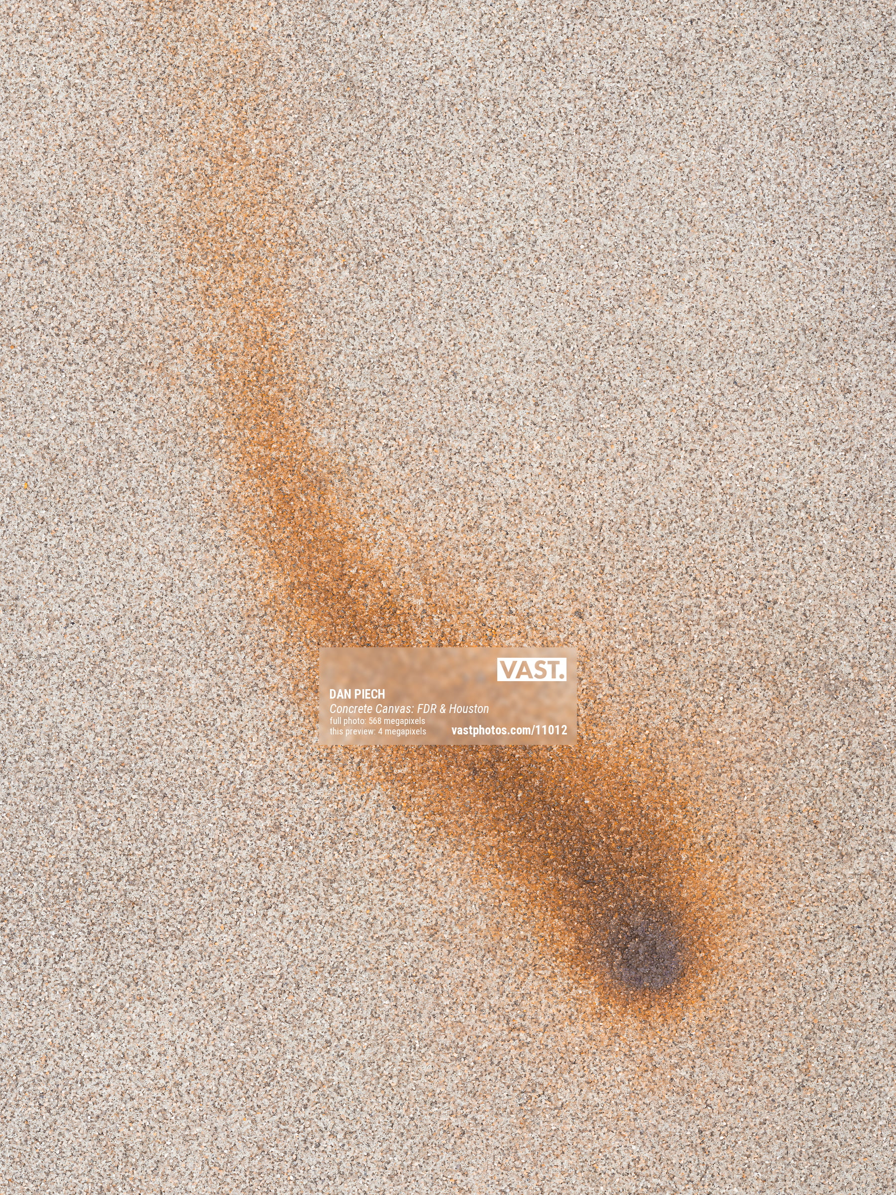 Dan Piech's Concrete Canvas series captures the accidental beauty that serendipitously occurs when the concrete beneath New Yorkers' feet is inadvertently graced by spilled paint, fallen debris, expanding cracks, chemical stains, and other delightful visual elements. An avid runner, Piech has spent over three years traversing every single Manhattan street in search of these overlooked "artworks" that have become part of the fabric of the city.