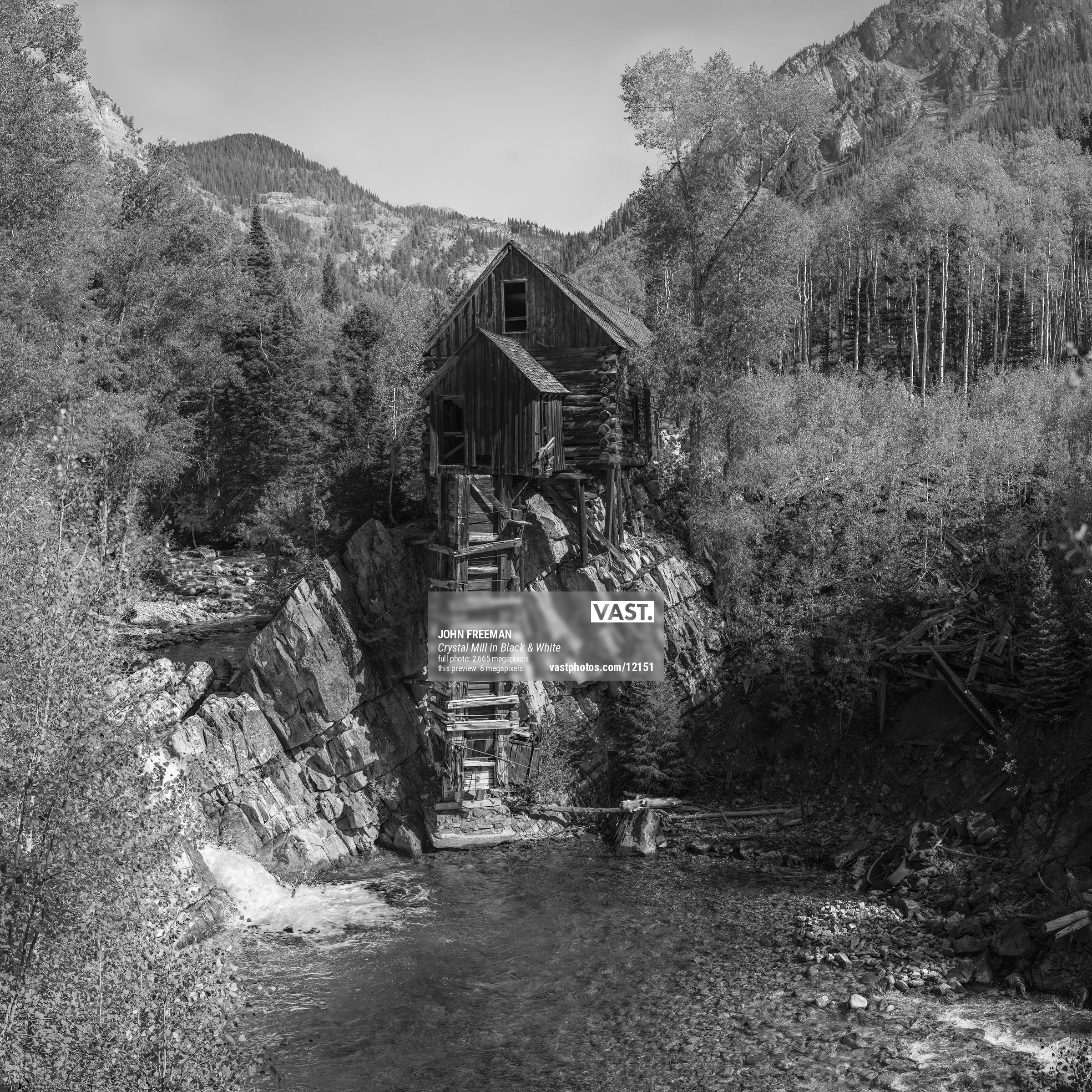 This is a Black & White rendition of my color shot of Crystal Mill.
