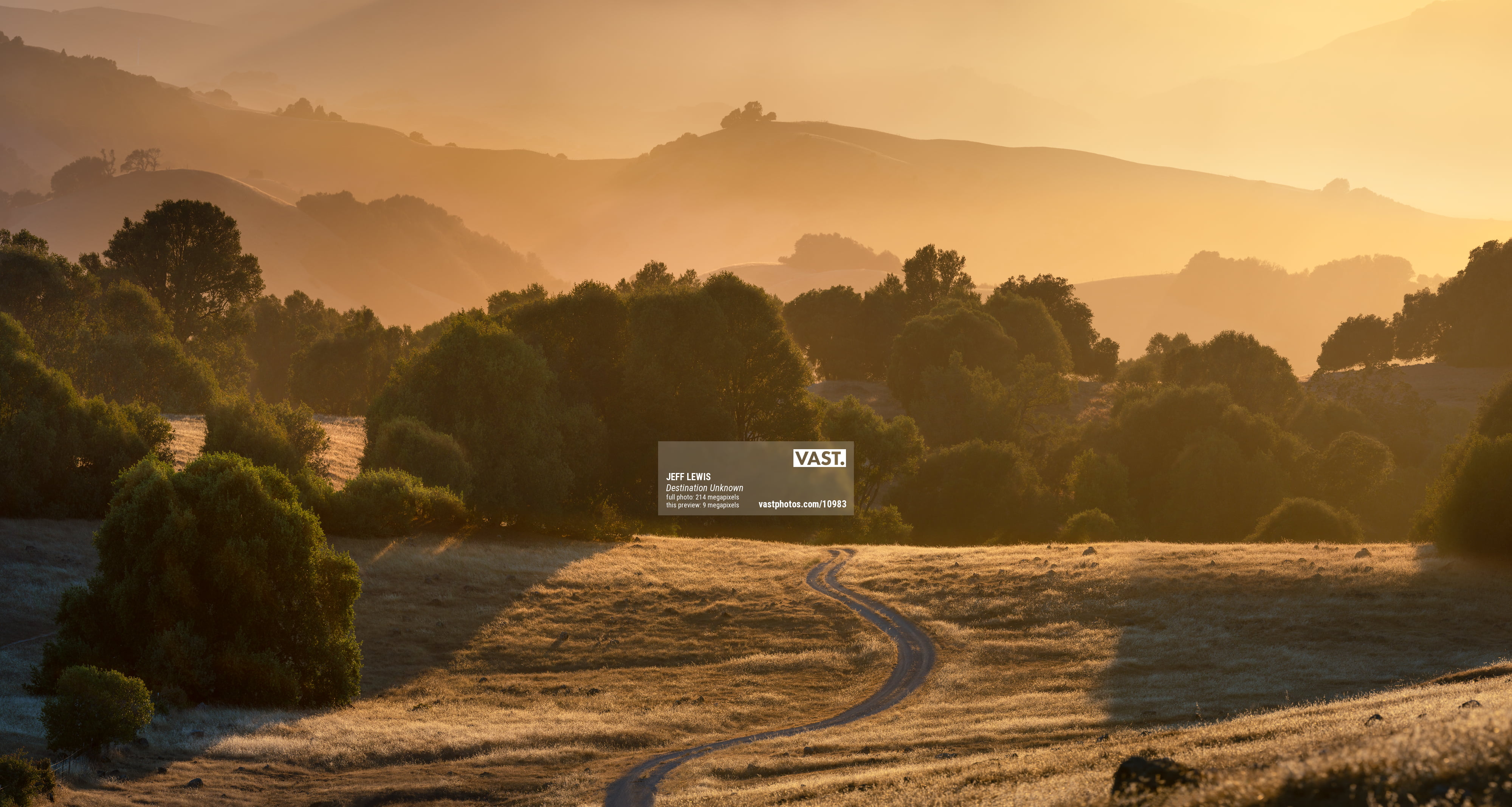 The beauty of this VAST photo is, we can see every blade of golden grass, every shimmering leaf on the trees. We FEEL like we could take a walk down that road.