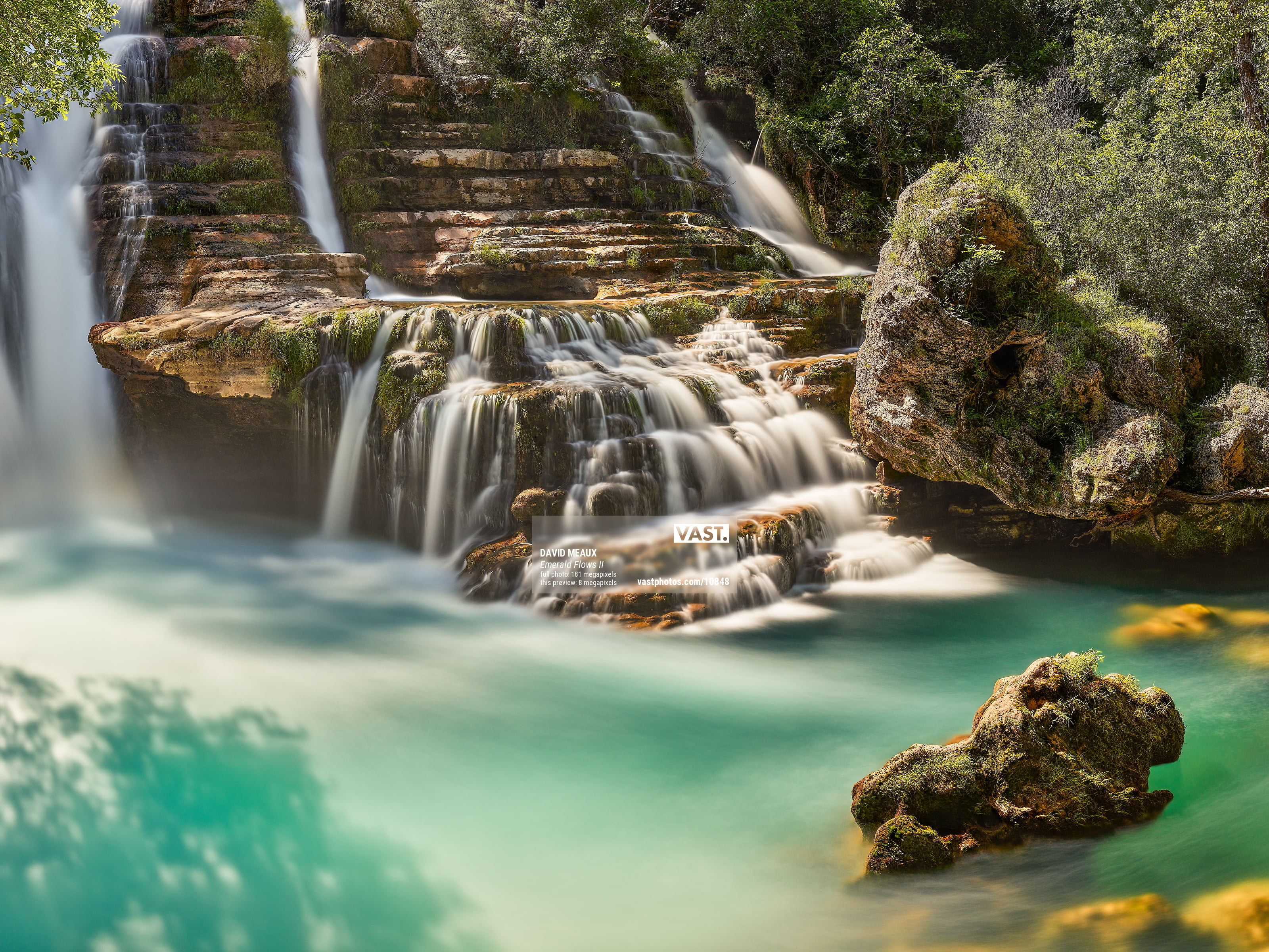 181 megapixels! A very high resolution, large-format VAST photo print of a waterfall and rocks; nature photograph created by David Meaux in Cascade de Navacelles, Navacelles, l'Hérault, France.