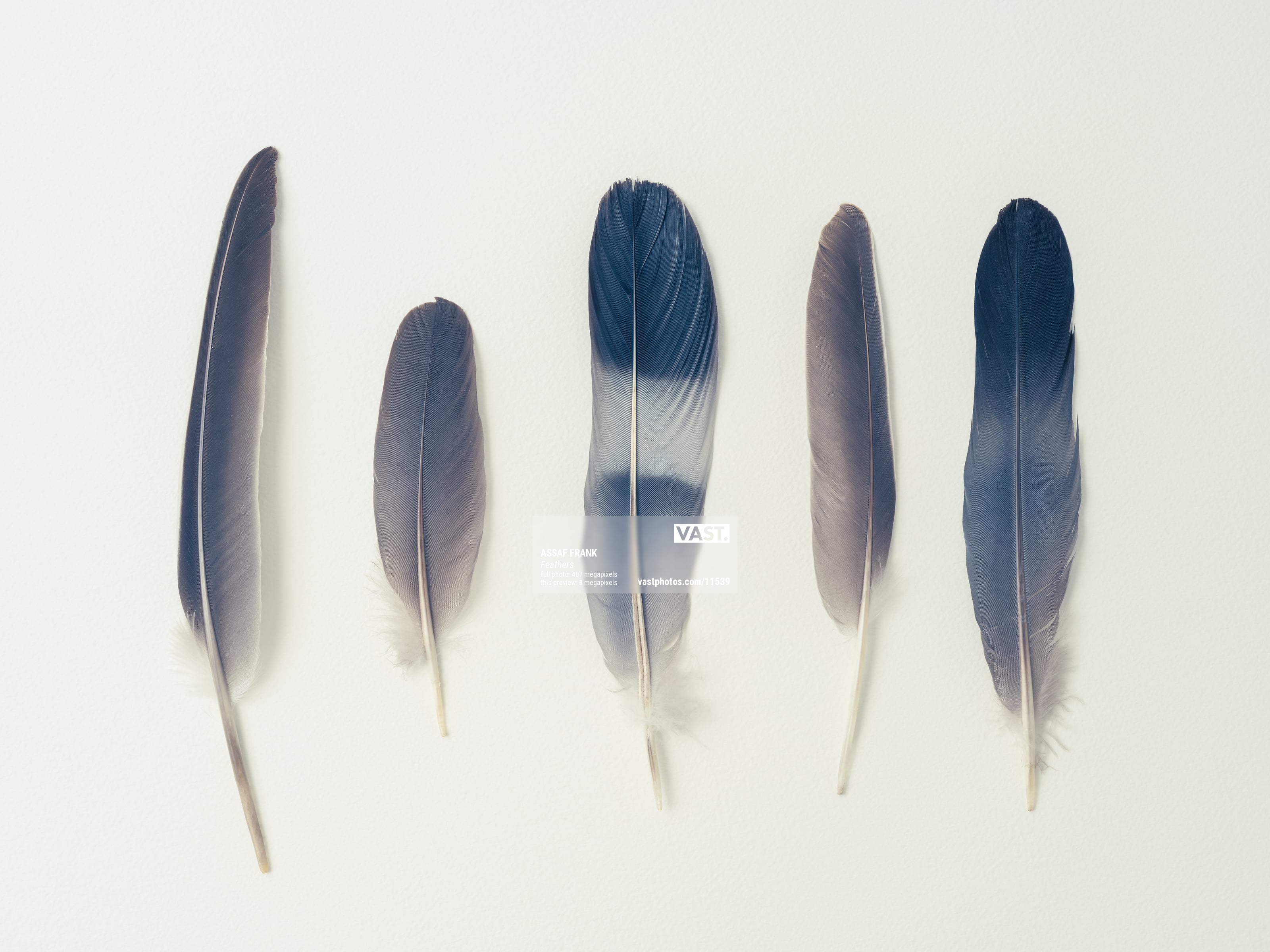Discover the captivating beauty of a row of feathers in this stunning photograph. Captured from above on watercolour textured paper, the feathers are presented in muted grey tones, creating a sophisticated and monochromatic composition. The high-resolution image allows viewers to admire the intricate details and textures of the feathers with remarkable clarity.