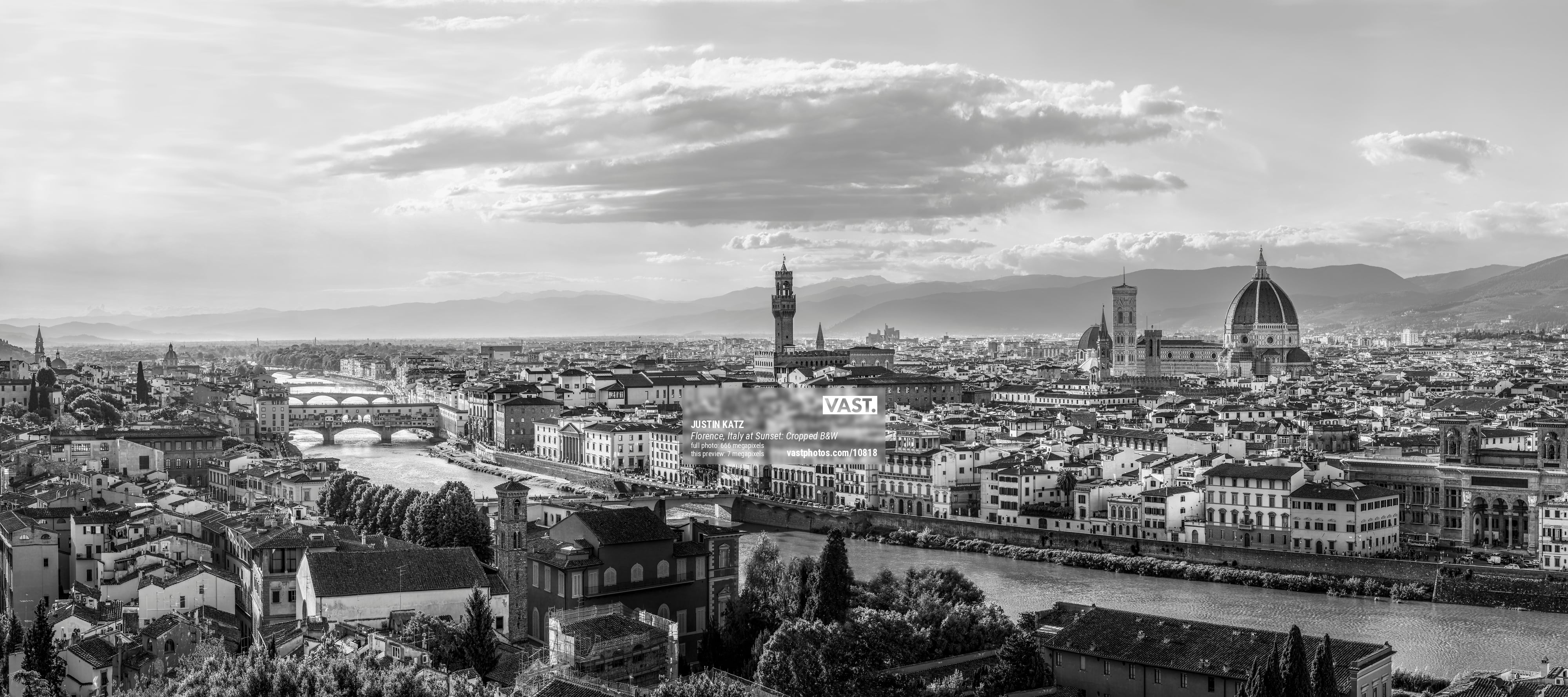 Captured right as the sun was beginning to set on a windy evening in May, and with some dramatic clouds to create a bit of interest in the sky, this ultra-high resolution VAST photo brings into vivid detail all of the wonderful elements that make Florence such an incredible city to visit. I am already planning my next trip to return here.