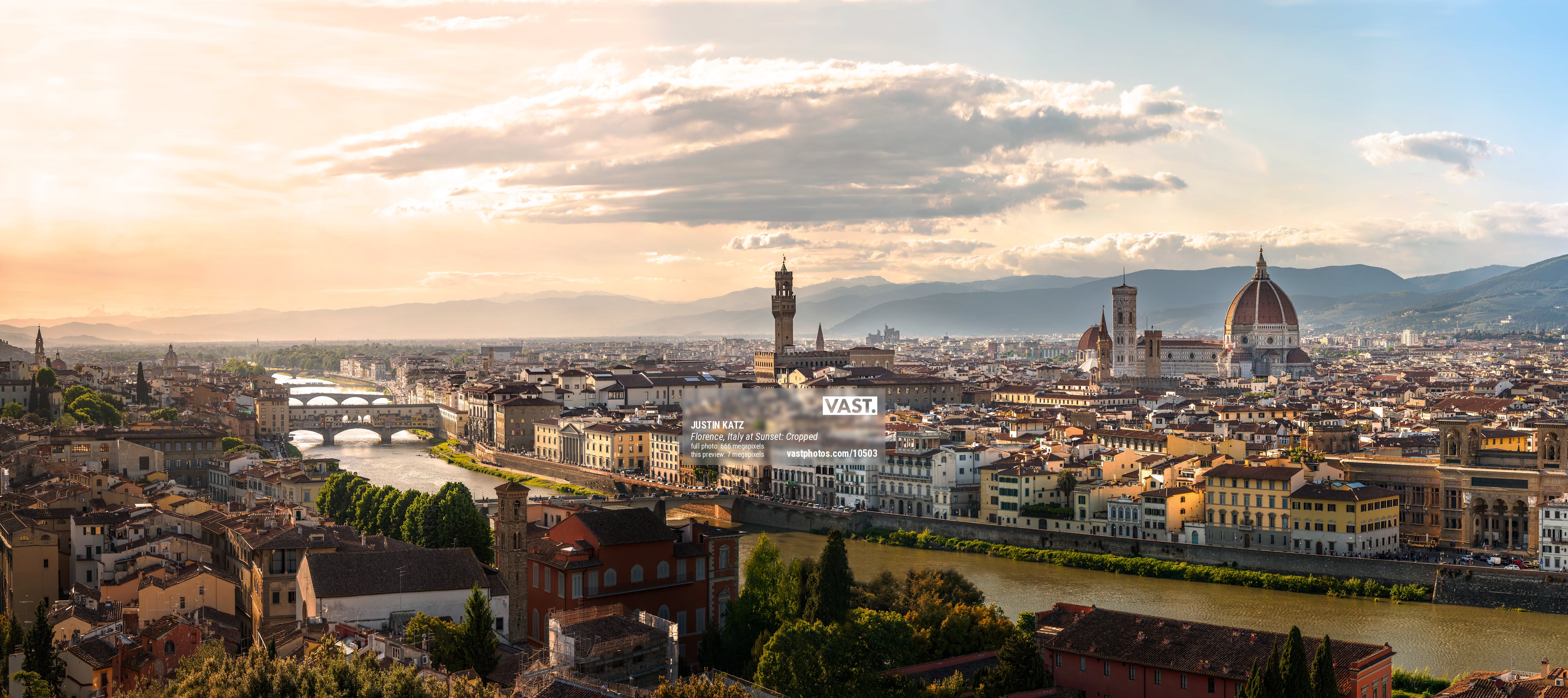 Captured right as the sun was beginning to set on a windy evening in May, and with some dramatic clouds to create a bit of interest in the sky, this ultra-high resolution VAST photo brings into vivid detail all of the wonderful elements that make Florence such an incredible city to visit. I am already planning my next trip to return here.