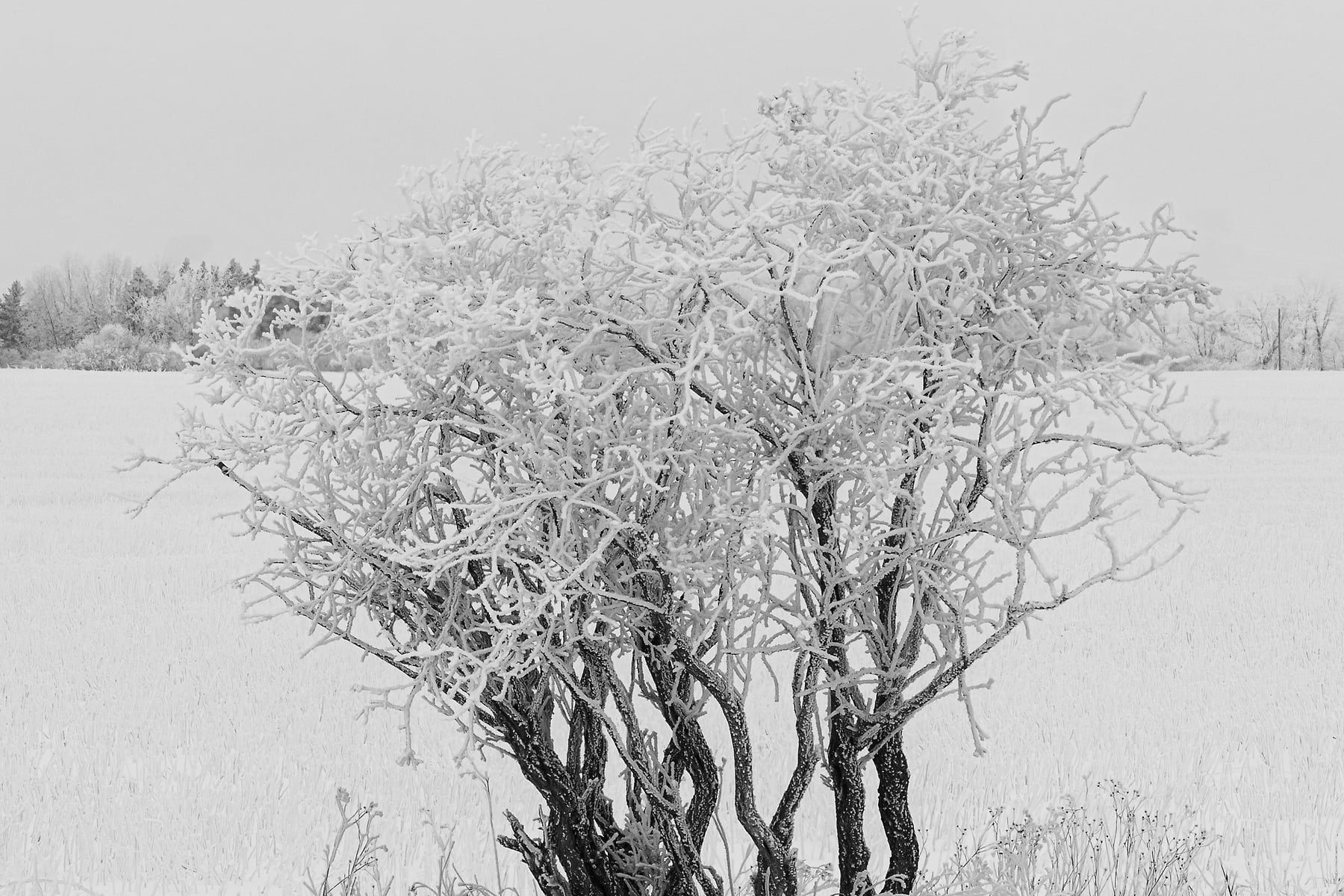 While light, fluffy hoarfrost is common on the prairies, the thicker, heavier rime ice is less common, typically occurring once a winter, or sometimes not at all. Rime frost forms when supercooled water droplets in freezing fog come into contact with surfaces (like trees, power lines, or fences) and freeze instantly. These events are often associated with high-humidity mornings, low wind, and temperatures between -4 and -7 C (25 and 19 F) or lower. A significant rime ice event occurred around Jan. 3–5, 2026, in parts of Southern Alberta when heavy, persistent fog in the region left a thick layer of rime ice. It was during these days that Scott set out to document this rare meteorological spectacle, with thick layers of rime frost transforming the prairies into a crystalline kingdom.