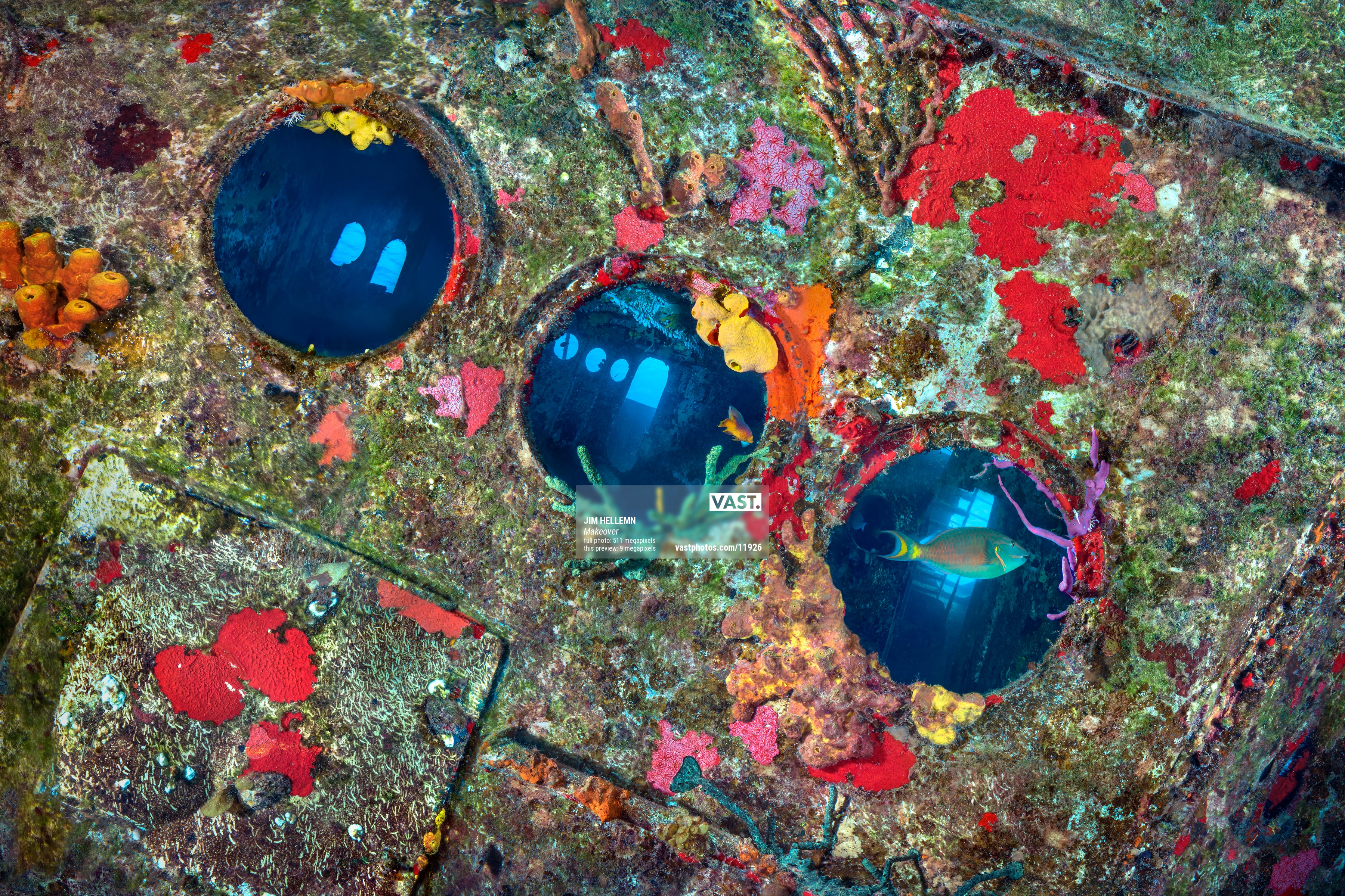 An underwater stitched panorama makes the color and details of the front part of the Kittiwake come alive. Captured in over 50 overlapping macro images photographed at close range, the spectacular colors of the Kittiwake’s new makeover are shown off, illuminated by a wide sheet of intense full spectrum light.