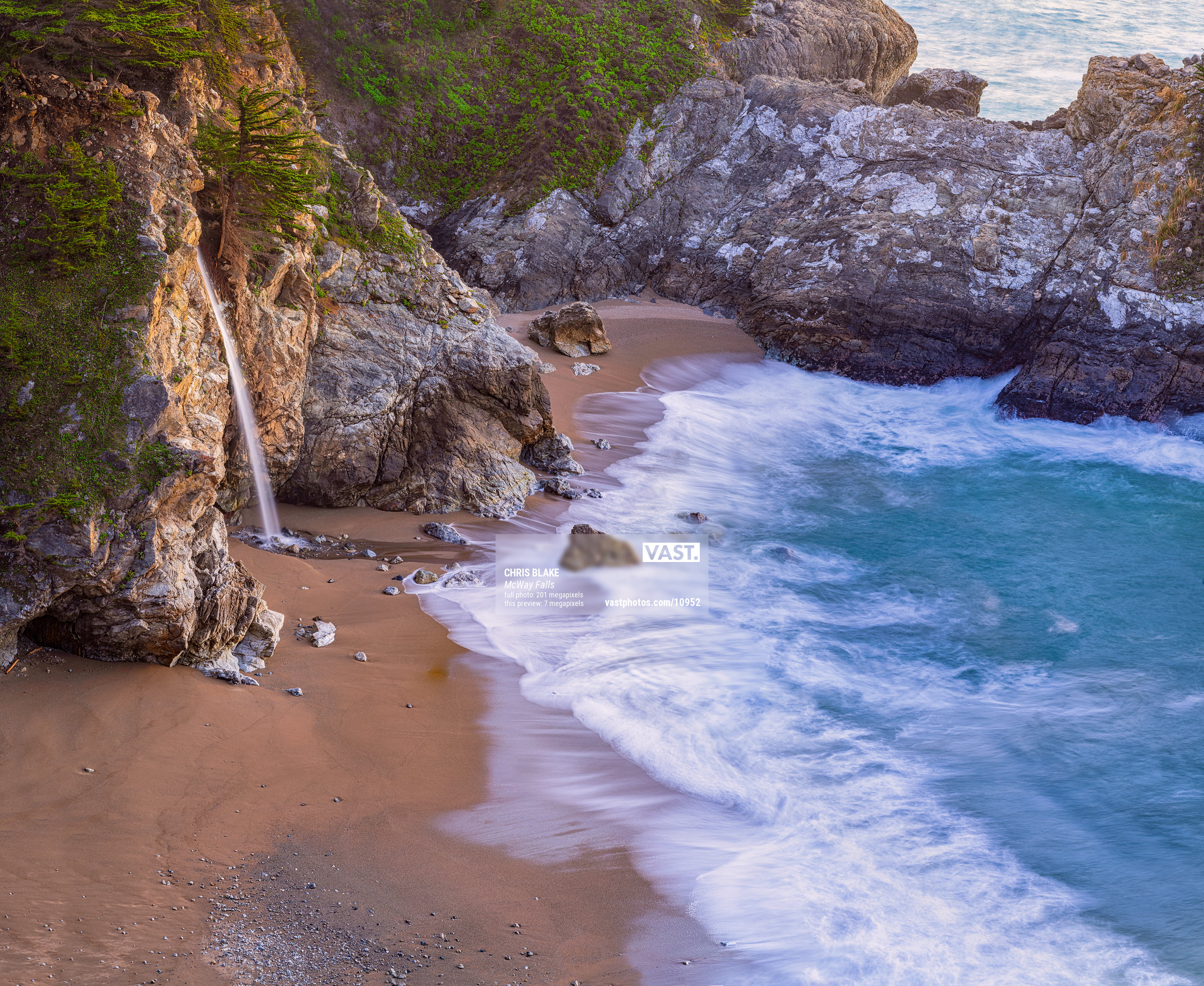 This VAST photo is a bit of an unusual composition. The main trail has mostly collapsed a few hundred feet to the beach below. Visitors are now very limited on where they can go and what views are offered. I chose to create this 201 megapixel photo to produce a tight focus on just the waterfall and lower beach. It’s a different and unique landscape and makes for a stunning image.