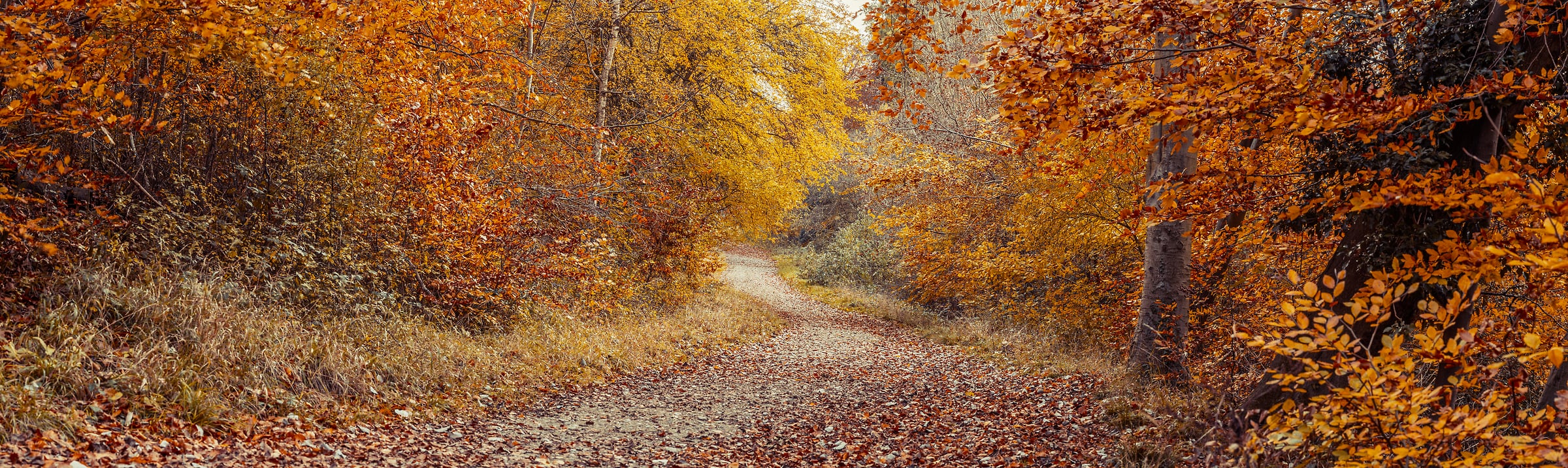 As the path leads deeper into the woodland, the autumnal glow intensifies, creating a rich, harmonious palette of warm tones. The untouched undergrowth and the gentle sway of branches in the breeze add to the serenity of the scene. This idyllic autumn setting captures the fleeting beauty of the season, offering a quiet retreat for hikers, nature lovers, and photographers alike. The pathway symbolizes a peaceful journey through nature, where the crisp air and vibrant foliage create a truly mesmerizing landscape.