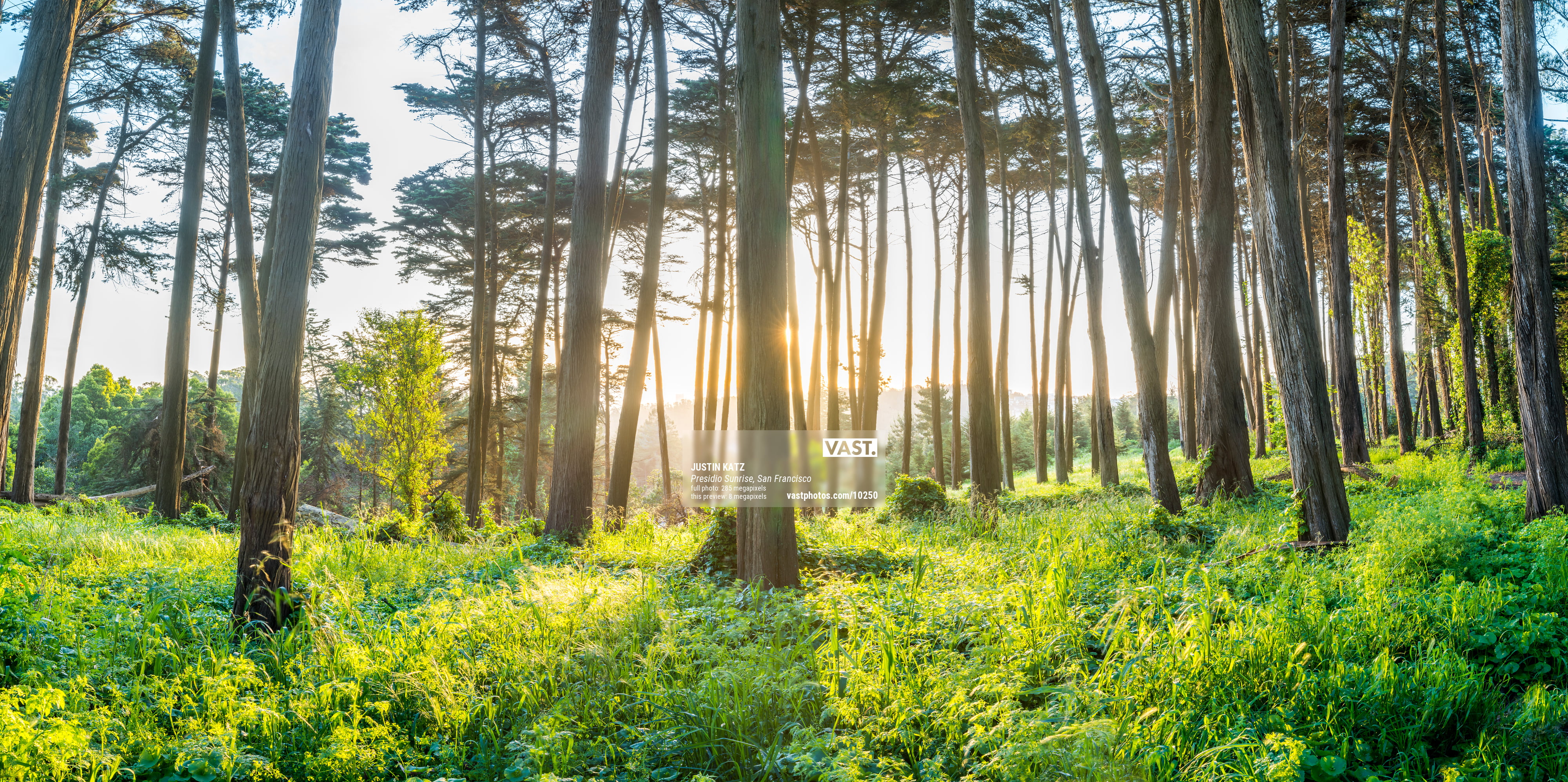 I chose this location for this VAST photo because I knew that as the sun rose to the East behind the trees, it would produce incredible light. I found my spot, and set up my tripod, gimbal, and camera to begin taking test photos in order to get a finished shot that was perfectly in focus, and perfectly exposed. Once I was sure that I had everything right, all that was left to do was wait for the sun to slowly rise over the horizon, and take the twenty-one overlapping exposures that I would use to stitch this VAST photo together. While I waited patiently, I suddenly froze as I saw out of the corner of my eye something I did not expect to encounter: a wild coyote, casually walking past me at a leisurely pace. Not a single other person was around, and the coyote paused his morning jog about five feet away from me to stare in my direction, clearly as surprised as I was to encounter anyone else outside at this magical hour.