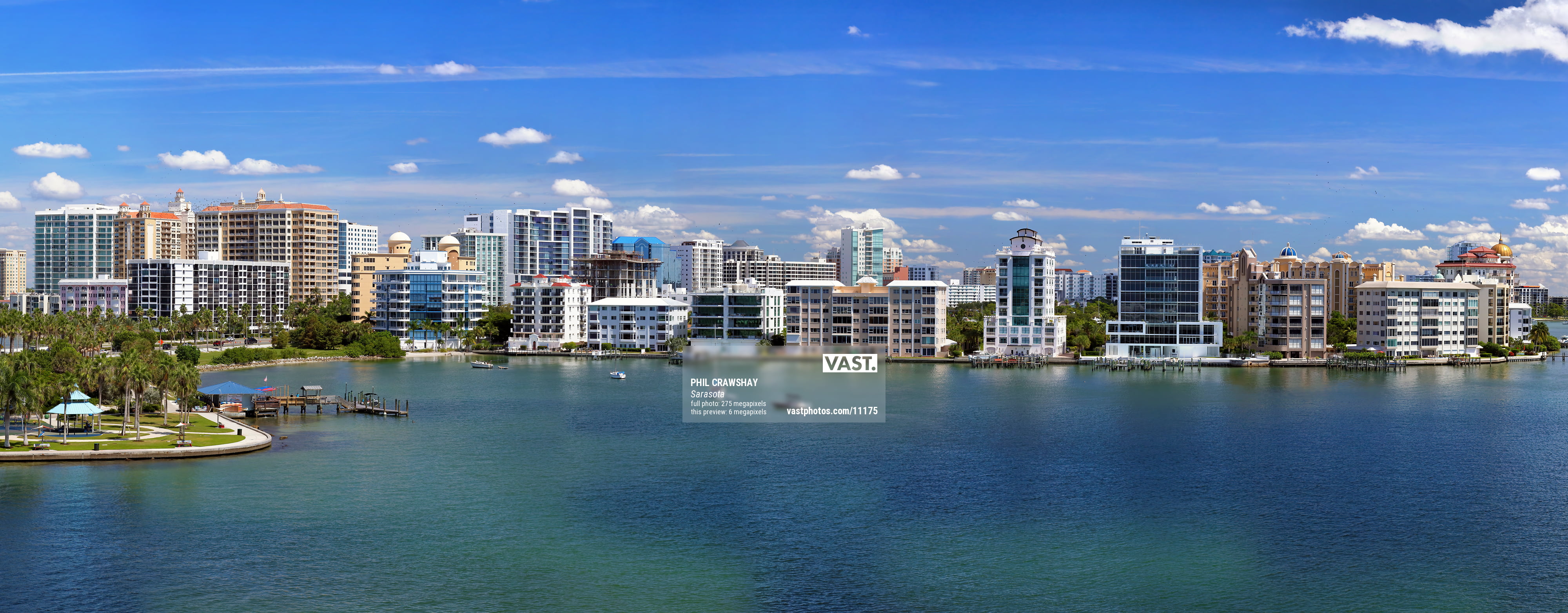 The Sarasota skyline by Sarasota Bay as seen from the John Ringling Bridge on a beautiful spring afternoon.