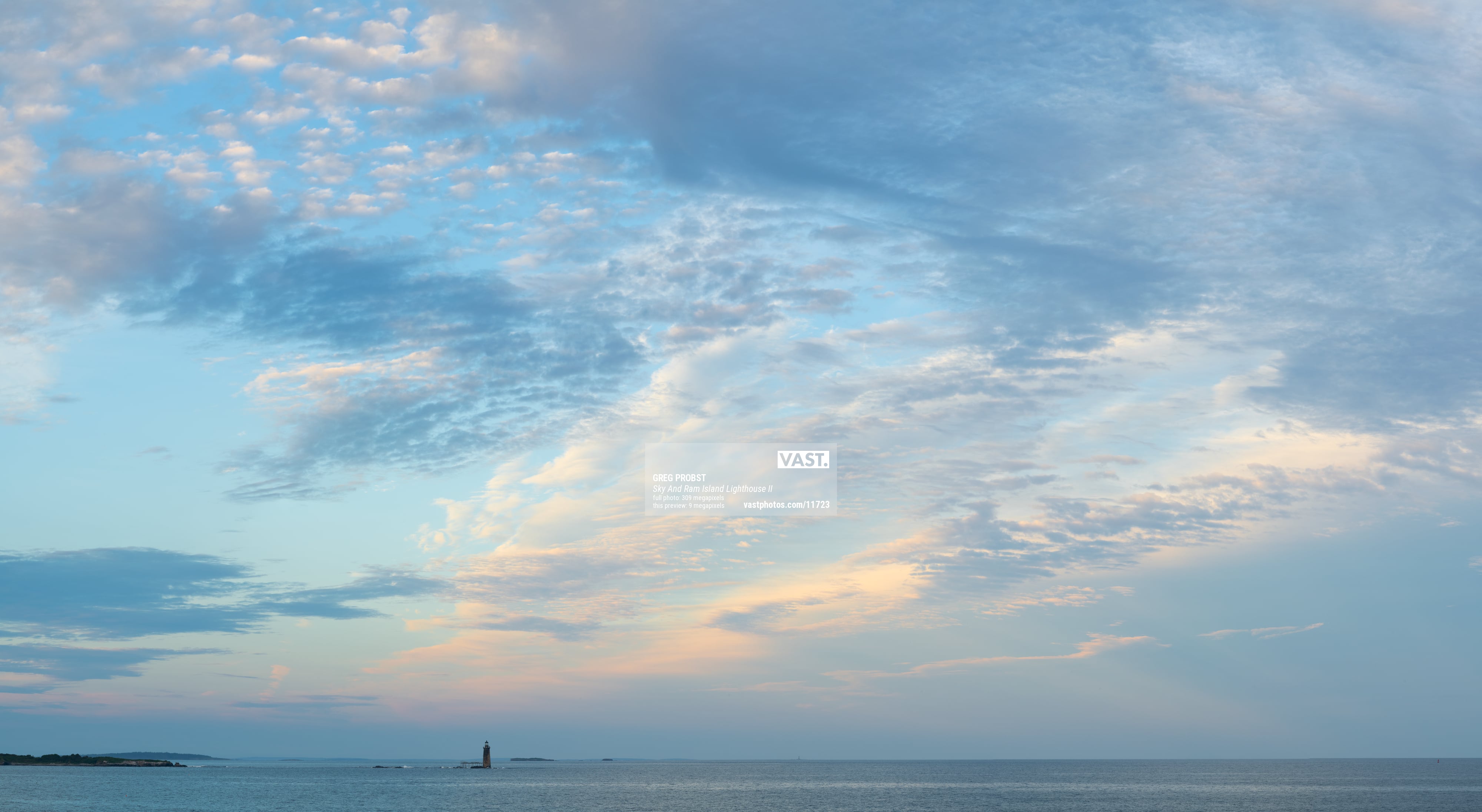 Looking across Casco Bay from Cape Elizabeth you can see a speck on the horizon and thats Ram Island lighthouse. The clouds offer a great sense of scale to this scene.