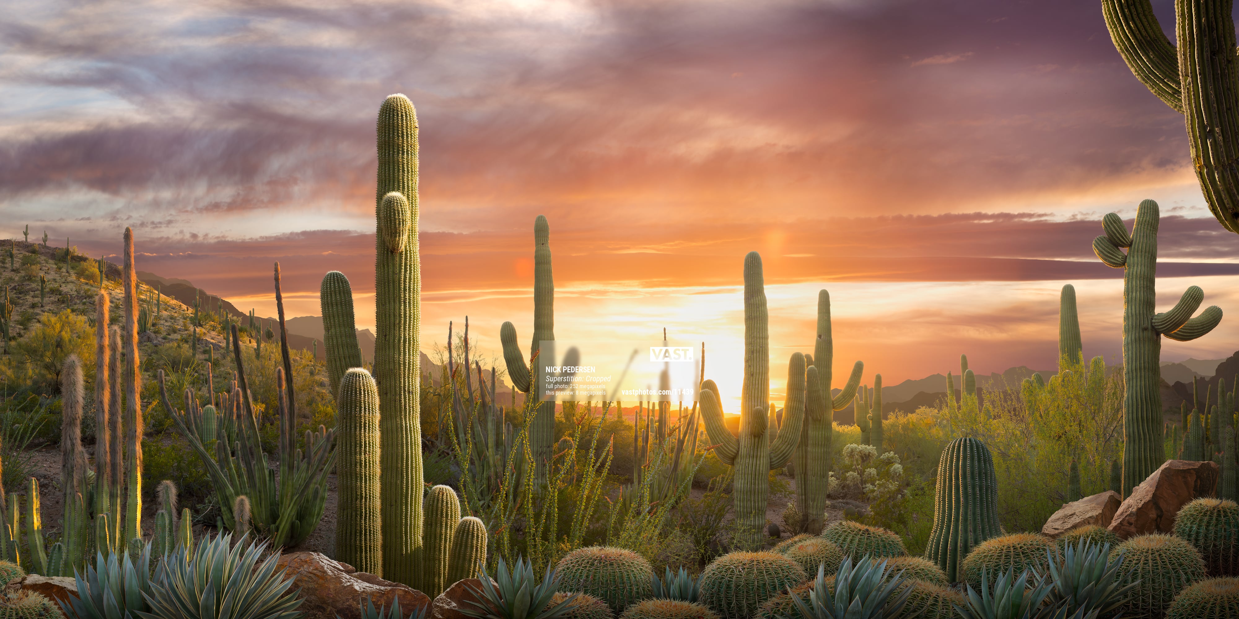“Superstition”, a super large-scale composite image I created using my photographs of different types of cactus from botanical gardens, mixed with the surreal desert environments I captured around the Superstition Mountains of Arizona.