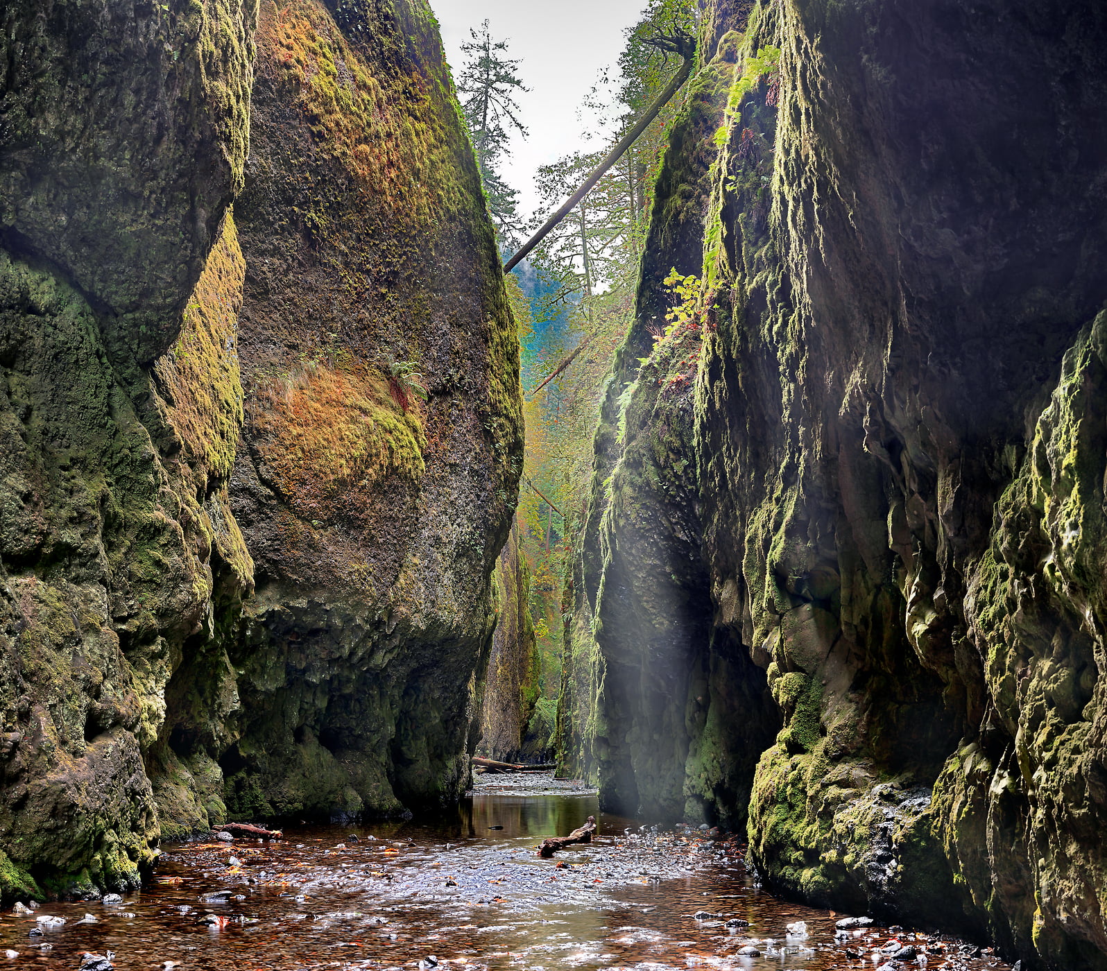 The green slot canyons of Oneonta gorge. In order to get to this spot, you have to navigate a 50ft damp log jam and then wade through chest high freezing water. I am told that people have actually died getting here!
