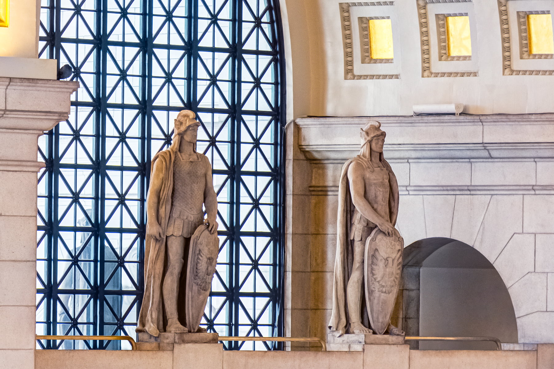 You wouldn’t know by this photo that more than 100,000 people pass through Union Station on a daily basis. By the time I made it to the bottom row it was almost 9:00 at night, long after rush hour ended. I have a great feeling of reverence as I contemplate the quiet solitude of the Roman legionnaires standing guard over this magnificent space day and night for over 100 years. It’s no surprise that Union Station is regarded is one of America’s civic architectural treasures.