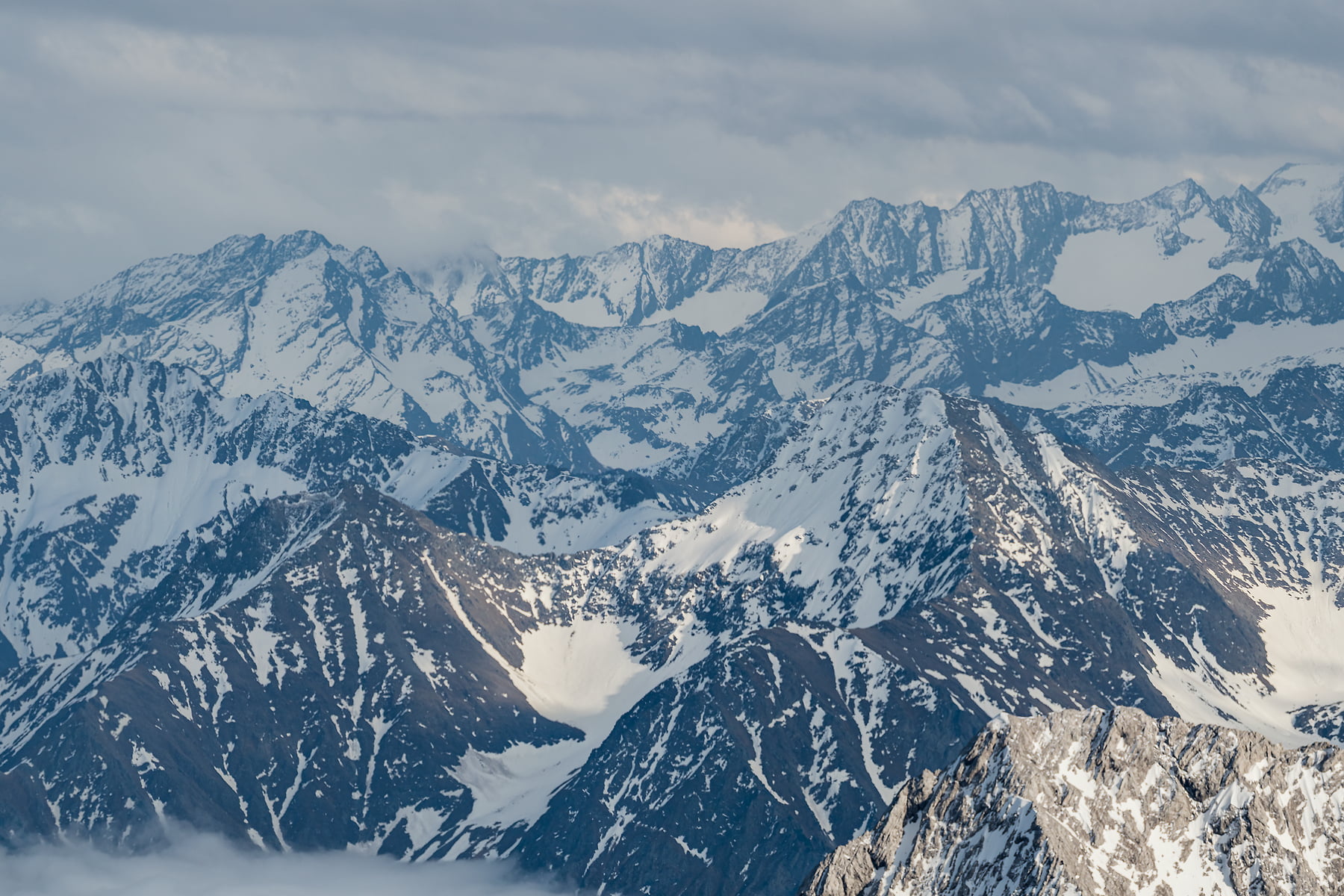 I made the pic at 2962 m above sea level from the Zugspitze. It`s the "Top of Germany". The Zugspitze massif is located in Bavaria (Germany) and in the north of Tyrol (Austria). The border between Germany and Austria runs over its western summit.