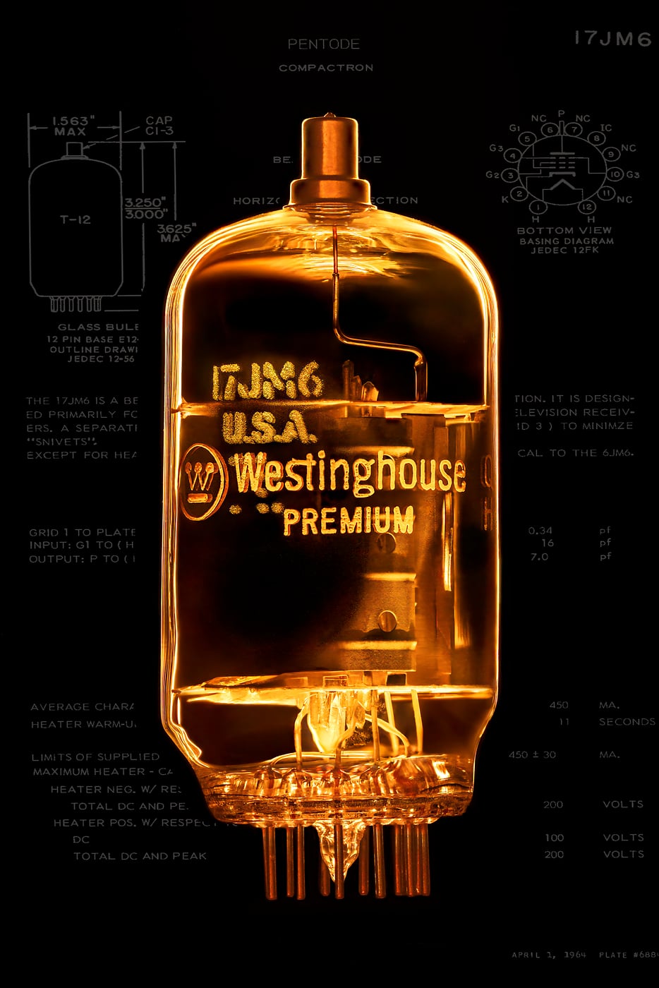 Photographer Scott Dimond had always thought that vintage vacuum tubes would make a great photographic subject, but he never pursued the idea until he came across a treasure trove of old tubes at a 2nd hand store. The result is an ongoing project showcasing vacuum tubes using various photographic techniques including backlighting, light painting and focus stacking. Where possible, Scott also energized the heating cathode within the tubes using a laboratory power supply. To determine which pins at the base of the tubes were used by the heating element, he needed to identify the tubes and then research them to find the manufacturer's original data sheets. Once found, those data sheets provided the information on the pin configuration and voltage/amperage that he needed to apply to activate the heating cathode.