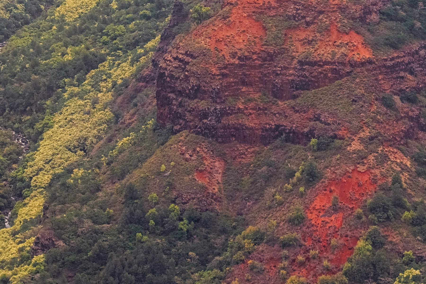 Often called the “Grand Canyon of the Pacific,” Waimea Canyon cuts deeply into the western side of Kauai, revealing layer upon layer of volcanic rock shaped by erosion, rainfall, and the collapse of the ancient shield volcano that formed the island. Its red cliffs, green valleys, and dramatic ridgelines make it one of Hawaii’s most striking inland landscapes.