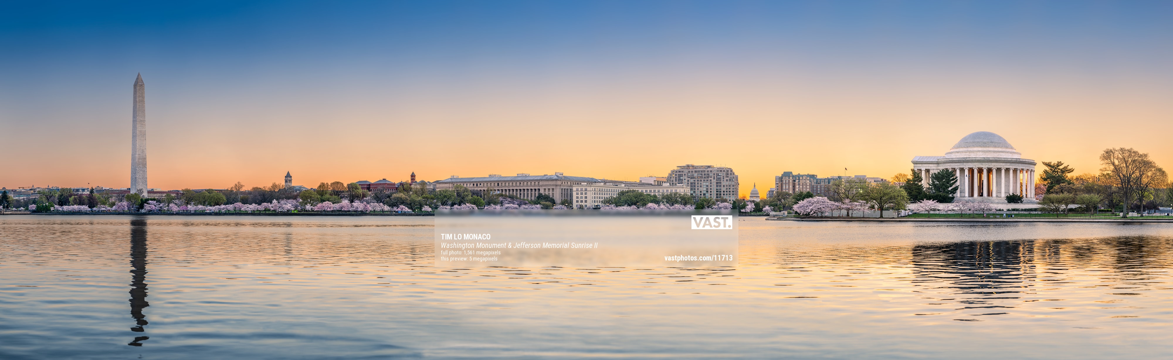 This ultra-high resolution photo of the Washington, D.C. skyline allows for making extremely large fine art prints and produces a hyper-realistic look unlike that of traditional fine art photography. At well over a gigapixel, it provides the viewer unrestricted access to the most intricate details of the scene. This fine art photo of the Cherry Blossoms in DC can be printed almost twenty feet long with no loss of detail.