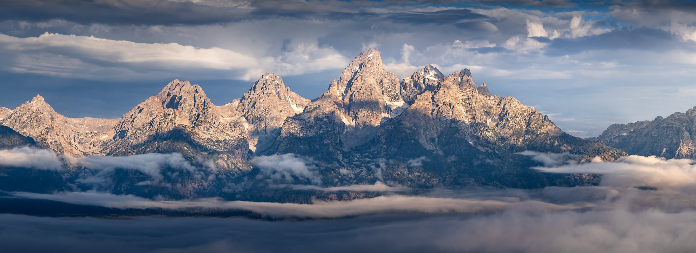 The scene was incredibly dynamic, with clouds drifting over the peaks and the fog changing colors. Thanks to the clear mountain air and sweeping views, I was able to capture five VAST photos over the course of a few hours, before heading back down the hill into the fog to start a 15-mile hike, which was also lovely! Over this trip, I hiked around 80 miles, which included a summit of Middle Teton, the second highest peak in the range and prominently visible in the center of this VAST photo. It was a long day, but one of the most rewarding summits I've stood on, and it made the photos from the trip much more special. I hope you're able to enjoy it as well!