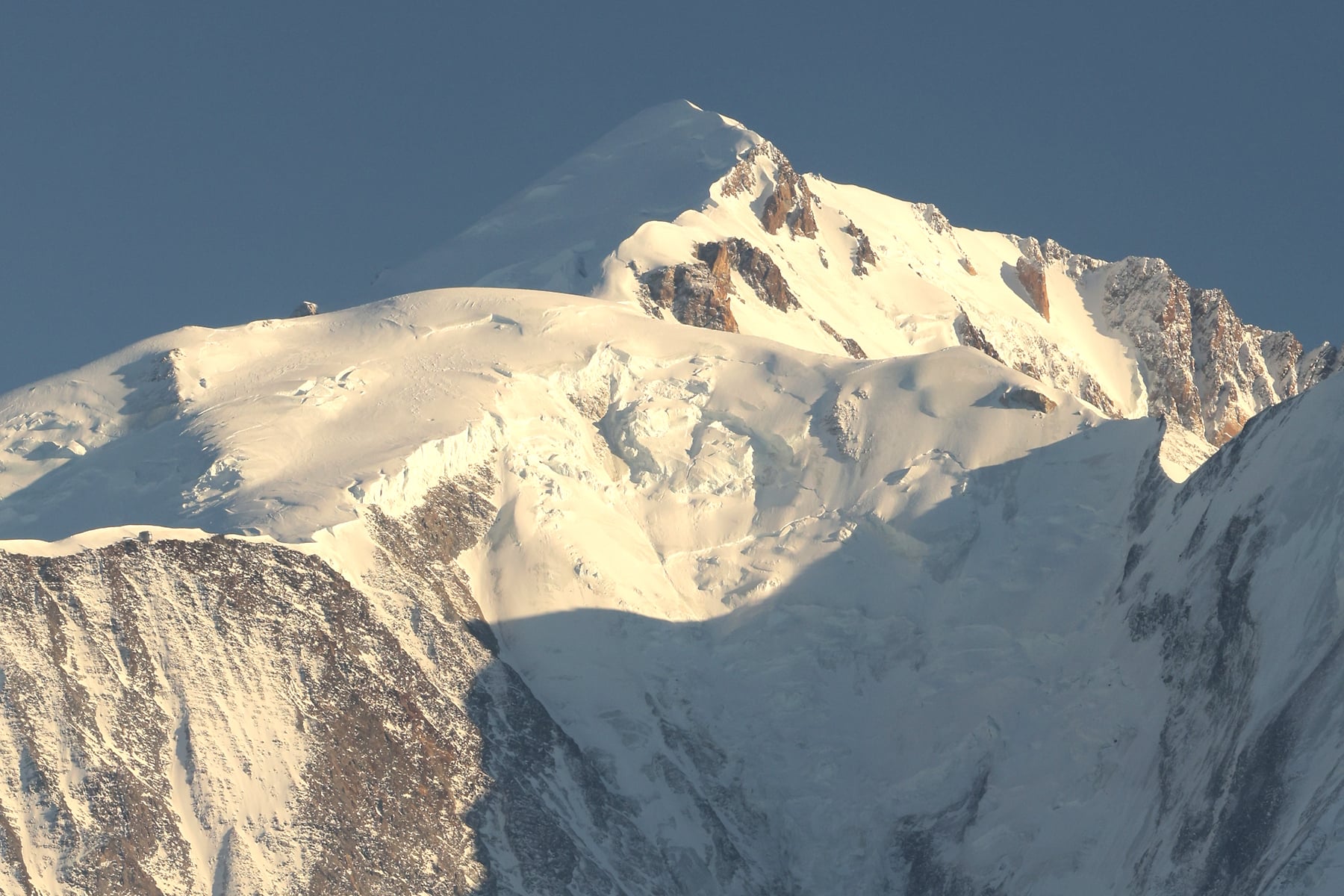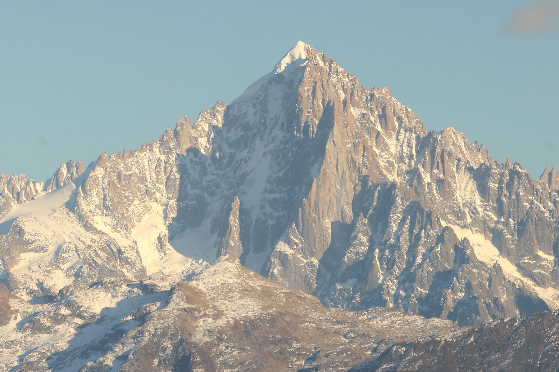 In this breathtaking November scene, the view stretches above the valley leading to Mont Blanc, revealing a sea of clouds that blankets the landscape. Rising above this ethereal expanse, the Aiguilles de Varan stand prominently on the left, while the majestic Mont Blanc range towers on the right, gleaming under the clear afternoon light. The calm, expansive atmosphere invites contemplation as the peaks appear suspended in time and space.