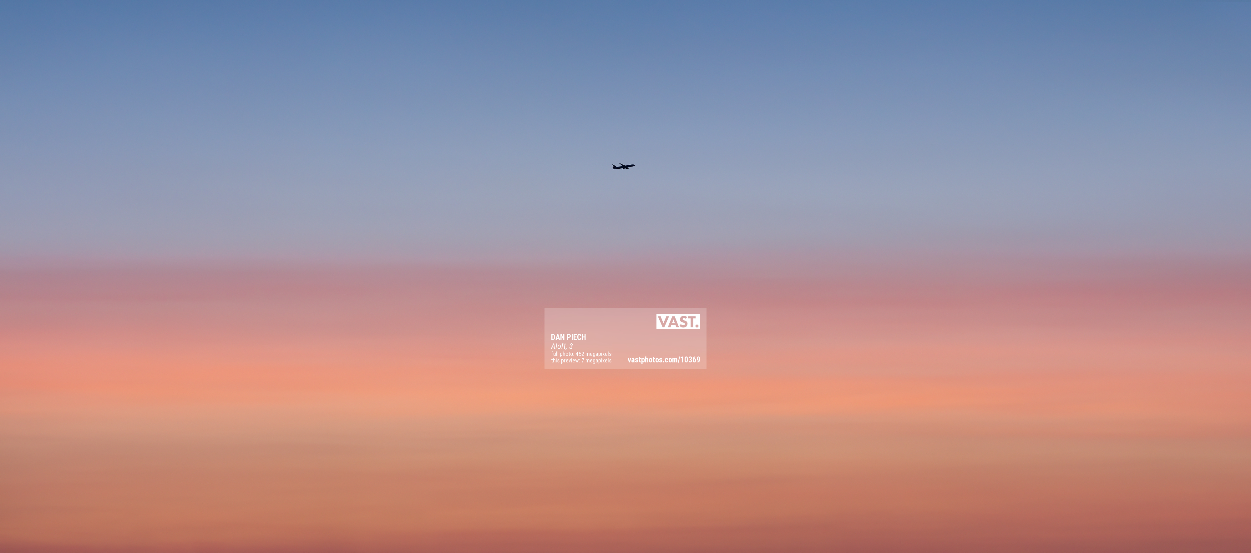 As part of the VAST artist collective, Dan uses advanced imaging techniques and equipment to create the photos for his Aloft series at incredibly high resolutions, often dozens of times higher resolution than ordinary photos. This enables the prints from the photos to be perfectly sharp even at very large sizes.