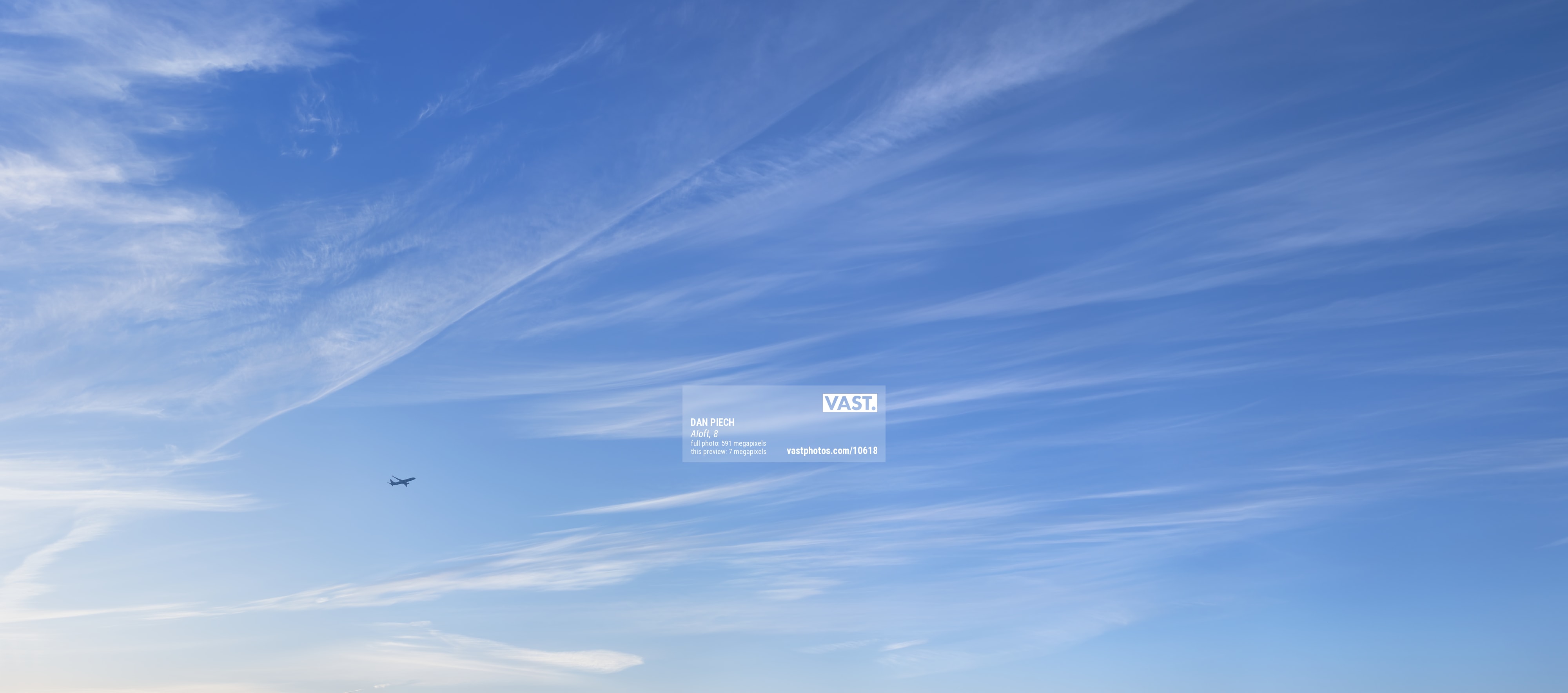 As part of the VAST artist collective, Dan uses advanced imaging techniques and equipment to create the photos for his Aloft series at incredibly high resolutions, often dozens of times higher resolution than ordinary photos. This enables the prints from the photos to be perfectly sharp even at very large sizes.