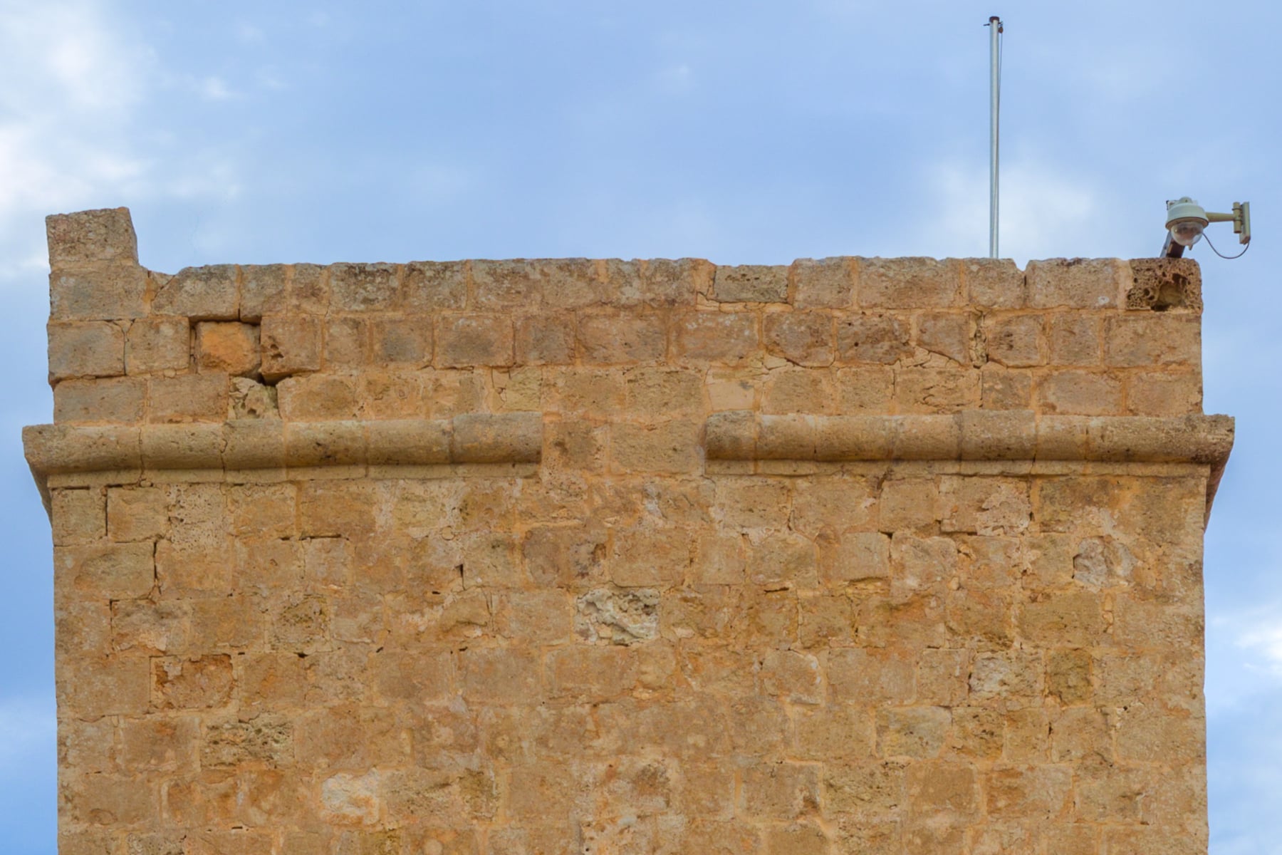 Dominating the right side of the composition is an ancient watchtower, a historical sentinel that adds character and depth to the image. Beyond the tower, modern buildings are subtly integrated into the background, reflecting Malta’s blend of historical charm and contemporary life. The panoramic view invites viewers to explore the natural splendour of the Mediterranean coastline, evoking feelings of adventure, relaxation, and timeless beauty.