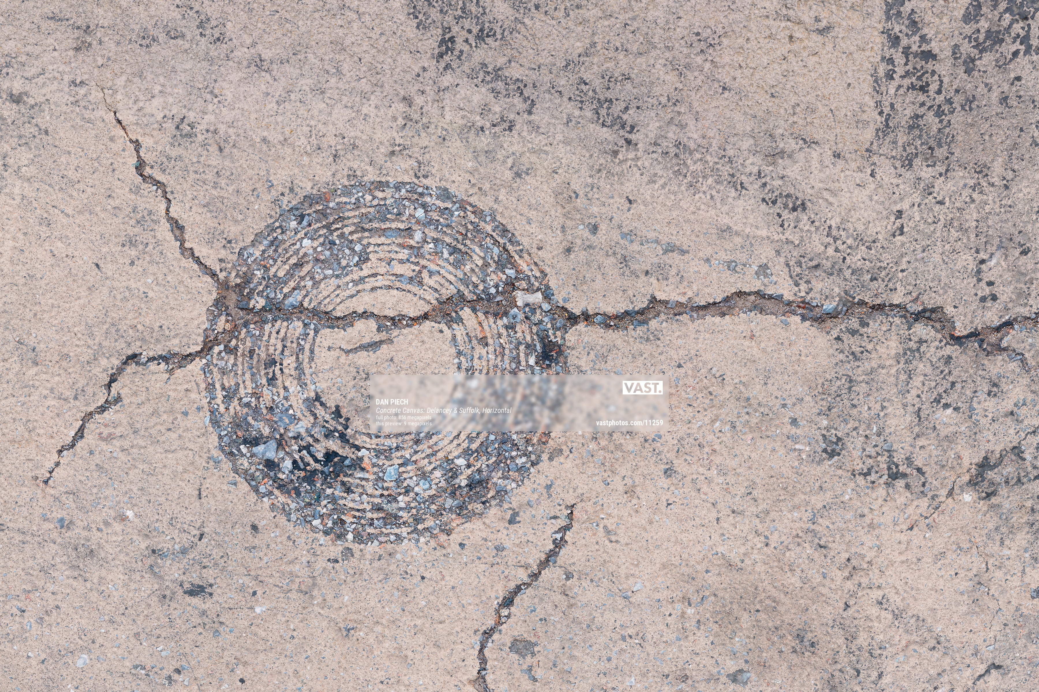Dan Piech's Concrete Canvas series captures the accidental beauty that serendipitously occurs when the concrete beneath New Yorkers' feet is inadvertently graced by spilled paint, fallen debris, expanding cracks, chemical stains, and other delightful visual elements. An avid runner, Piech has spent over three years traversing every single Manhattan street in search of these overlooked "artworks" that have become part of the fabric of the city.