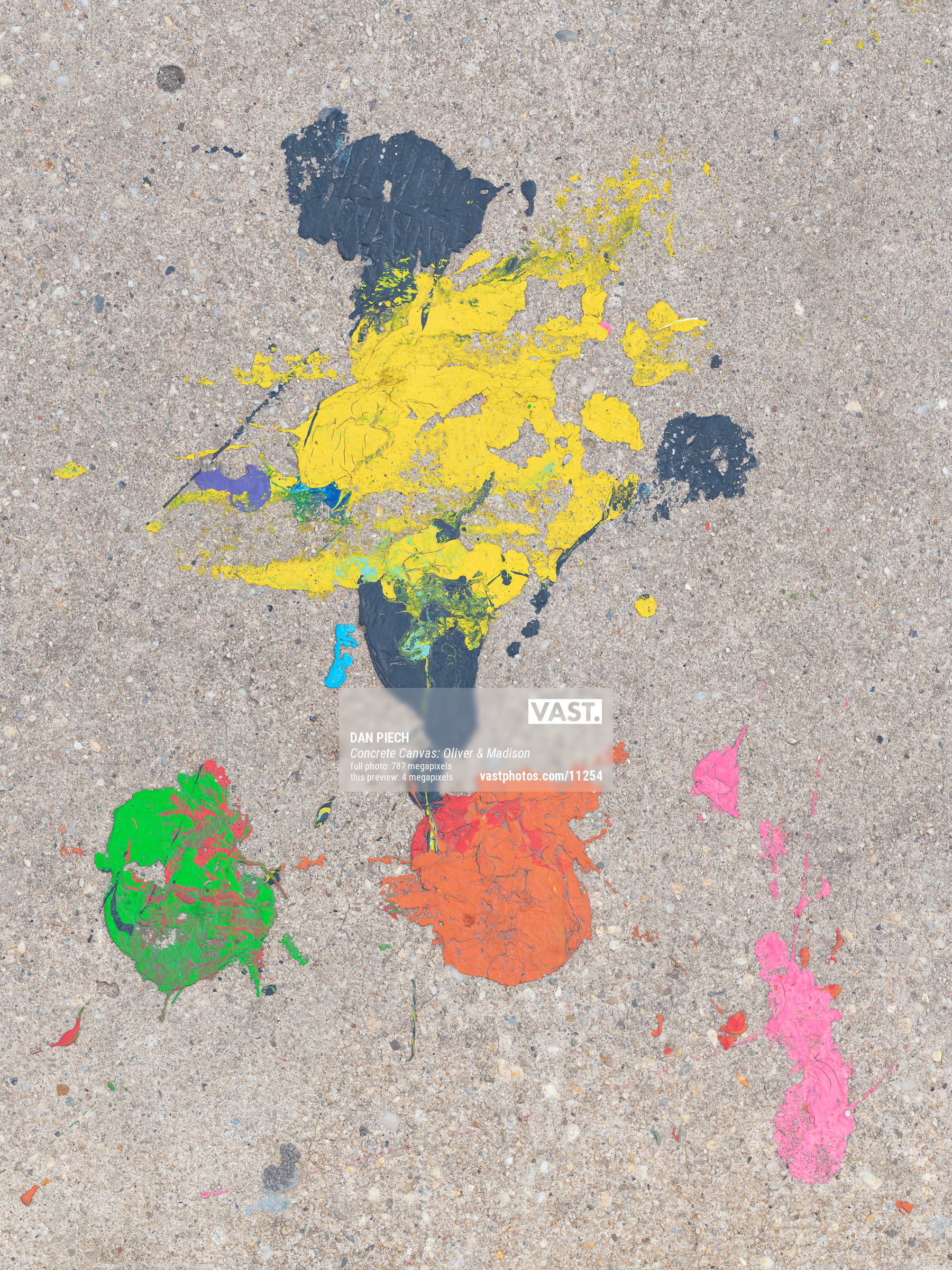 Dan Piech's Concrete Canvas series captures the accidental beauty that serendipitously occurs when the concrete beneath New Yorkers' feet is inadvertently graced by spilled paint, fallen debris, expanding cracks, chemical stains, and other delightful visual elements. An avid runner, Piech has spent over three years traversing every single Manhattan street in search of these overlooked "artworks" that have become part of the fabric of the city.