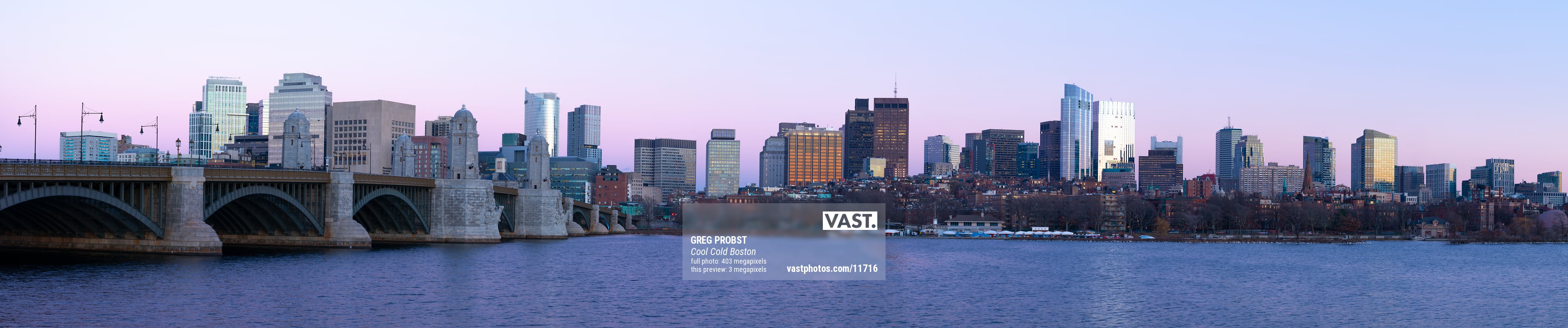 This VAST view is from downtown to the Back Bay including the Longfellow bridge crossing the Charles river. The boats at the Community Boat Center are in there winter wrap waiting for Spring to come.
