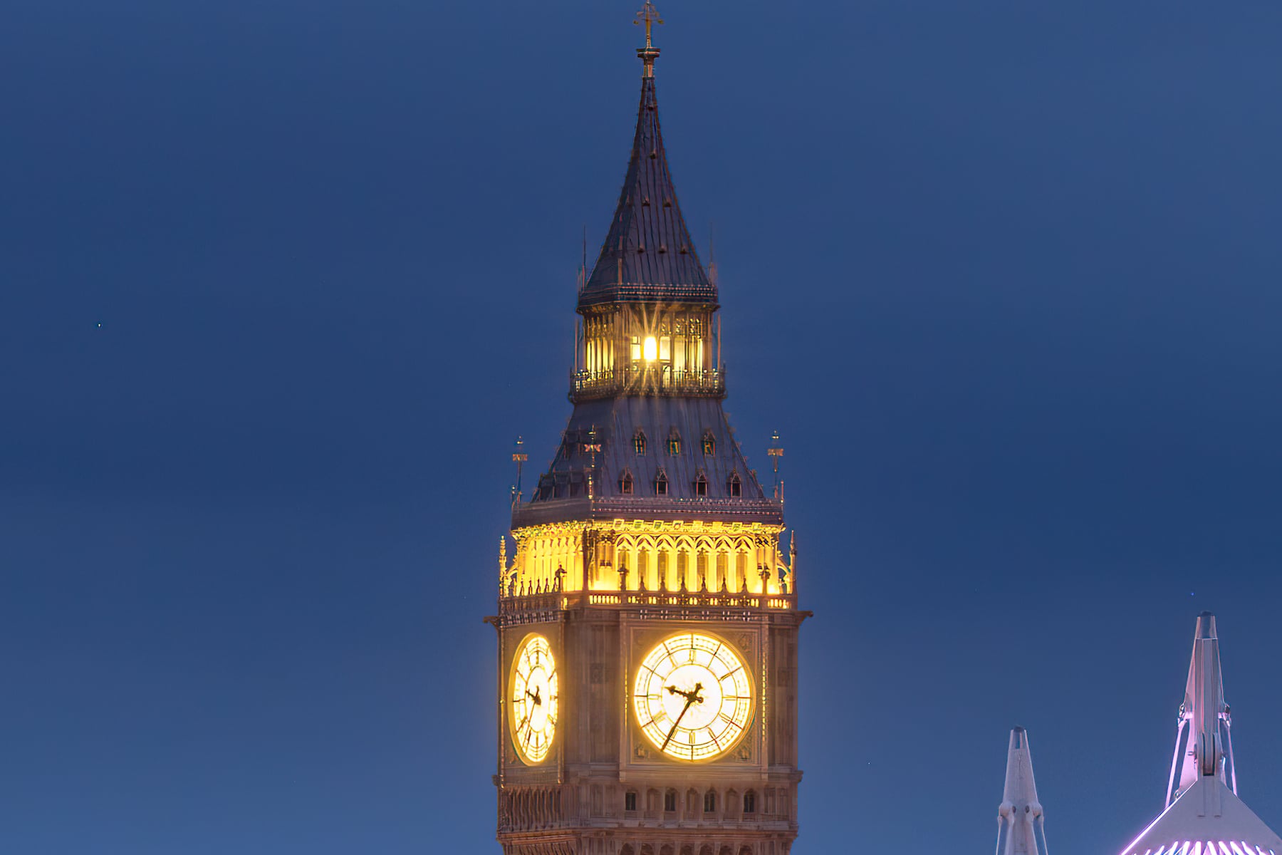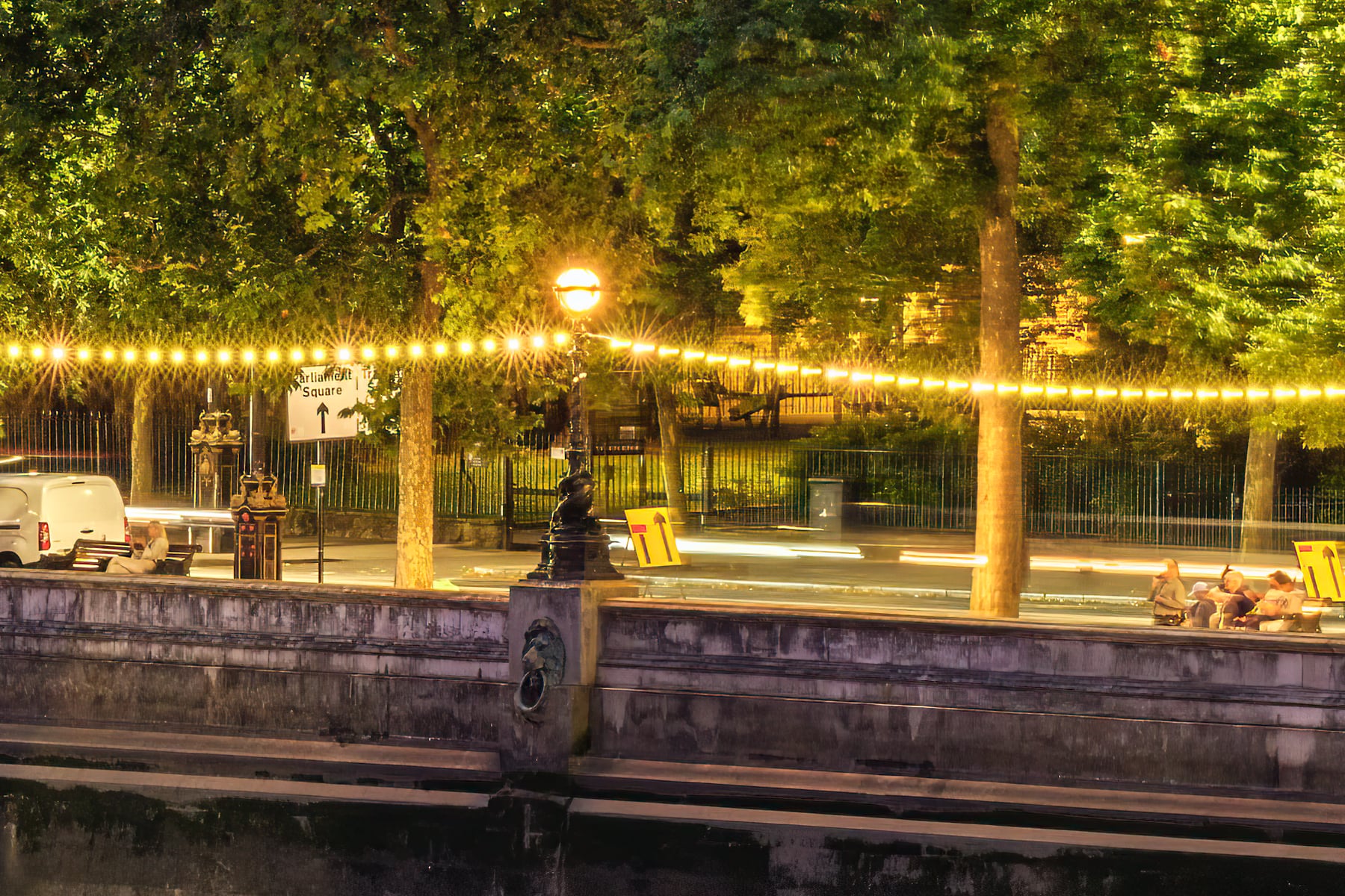 As the sky deepens into a rich twilight blue, the image encapsulates the vibrant energy and timeless charm of London. The blend of natural beauty and architectural grandeur creates a mesmerising visual narrative, inviting viewers to experience the allure of one of the world's most iconic cities.