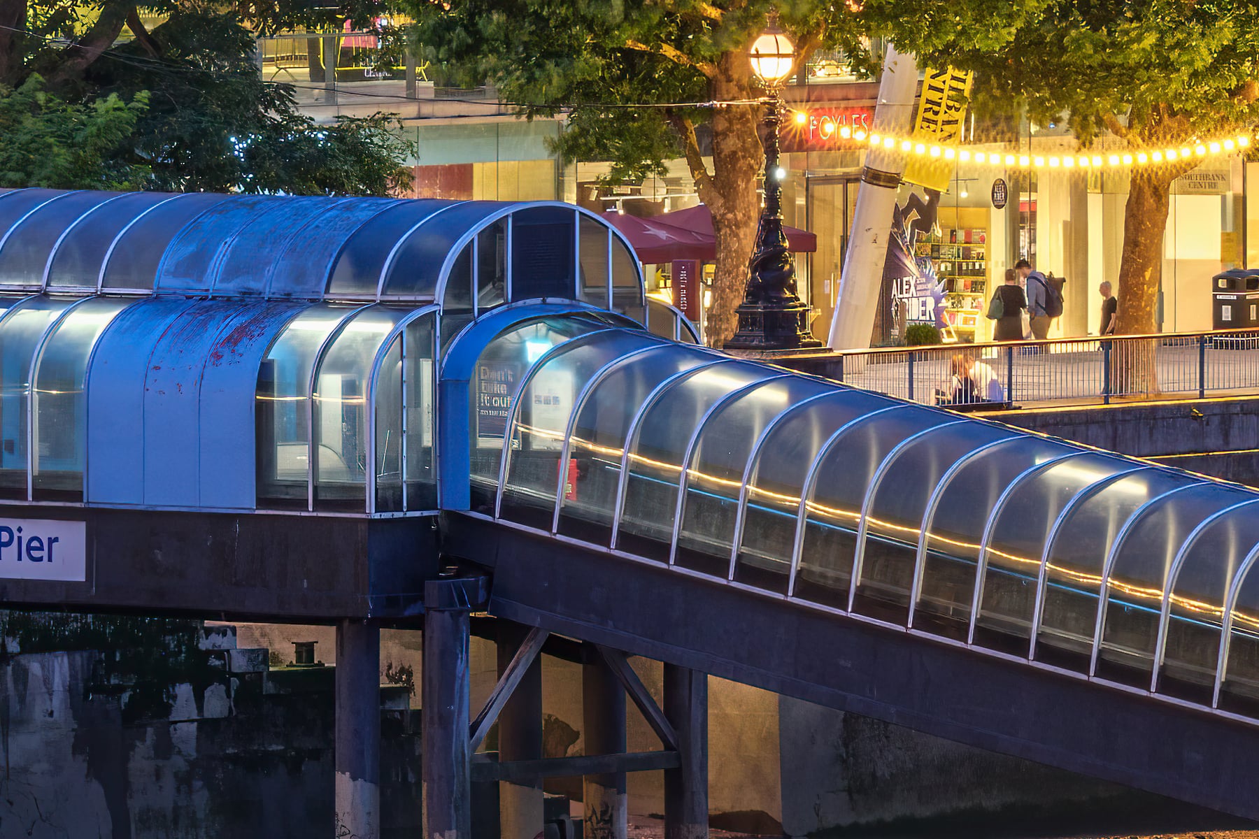 The bustling activity along the riverbanks is evident, with boats gliding gently across the water and the glow of streetlights adding warmth to the scene. The illuminated bridges, including the Hungerford Bridge with its distinctive pedestrian walkways, connect the two sides of the river, symbolising the seamless blend of modernity and history that characterises London.