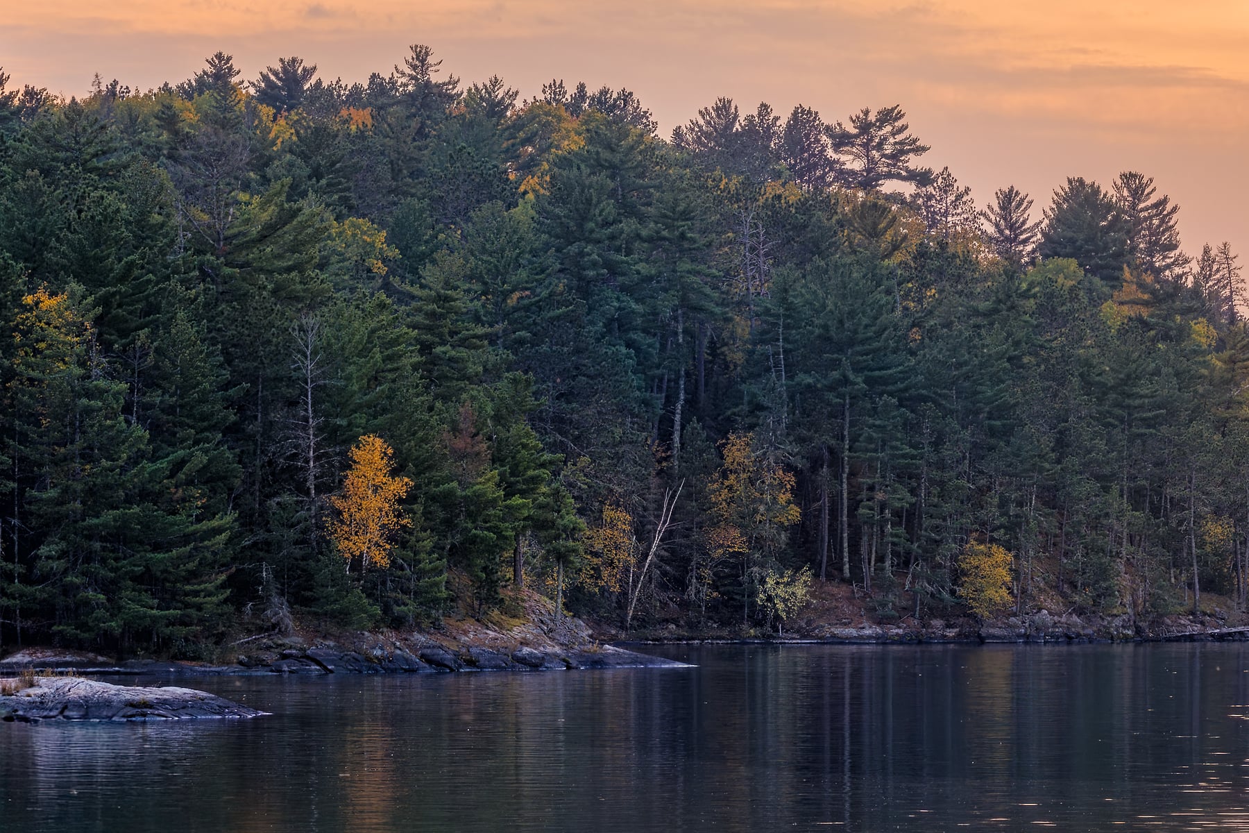 While exploring the shoreline of Lake Kabetogama, I eventually found a narrow stretch of rock that opened to the west and framed a single island as a natural focal point. From there it became a waiting game. Weather changes quickly in Voyageurs; evenings that begin calm and promising can turn into wind and rain long before sunset. It took several nights of watching storms roll through and light fizzle out before everything finally aligned clouds, color, and a gentle enough breeze to keep the water smooth.