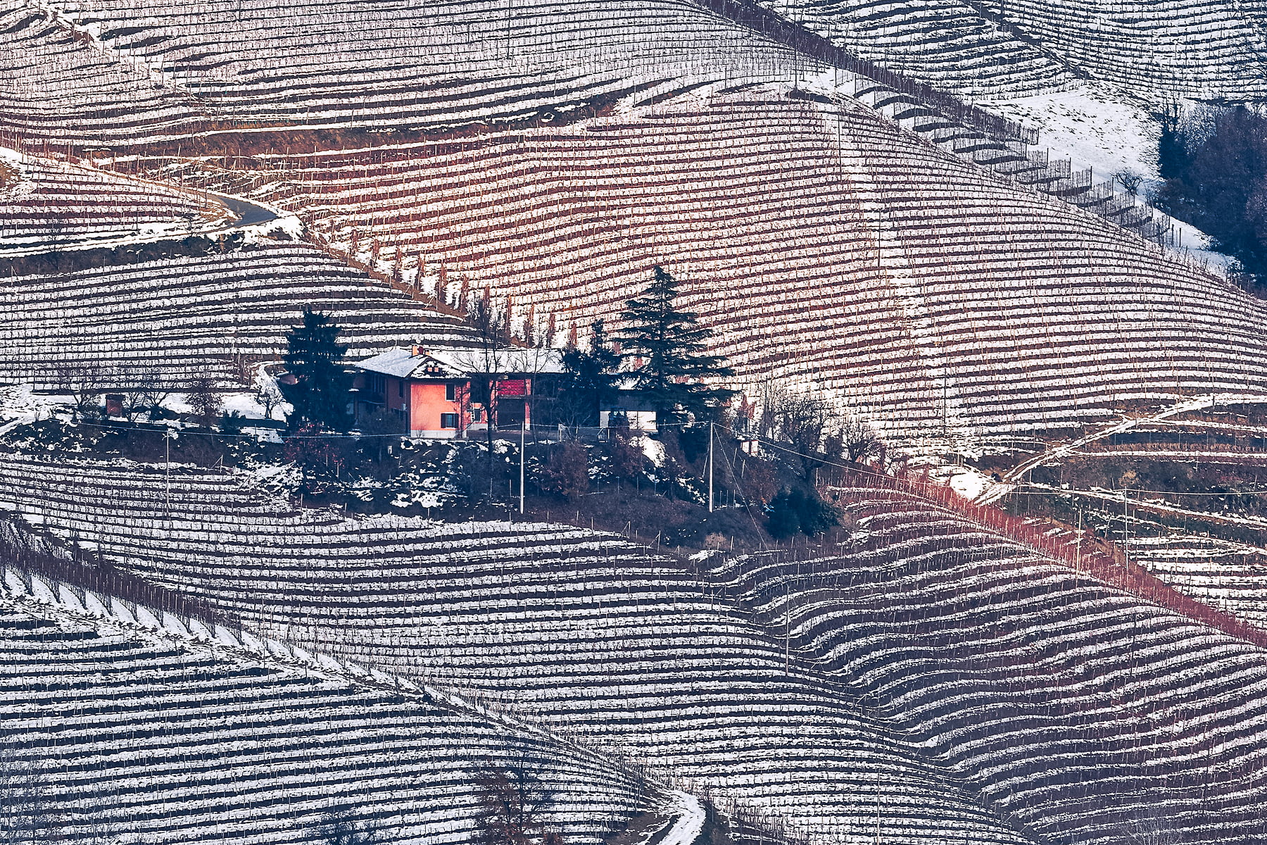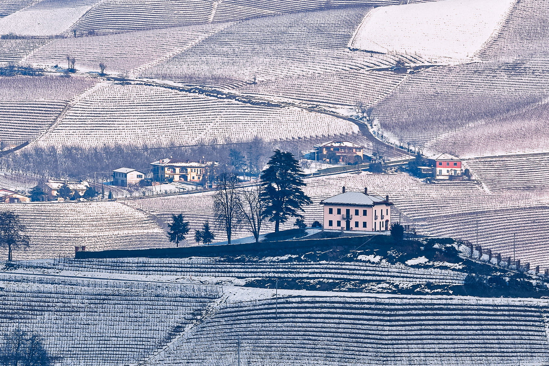 In this photo you can wander with your eyes looking for towers and churches perched on the highest peaks of the hills, the farms with their vineyards, the villages with their roads, in an endless path, all under a soft blanket of snow, abundant in this winter
