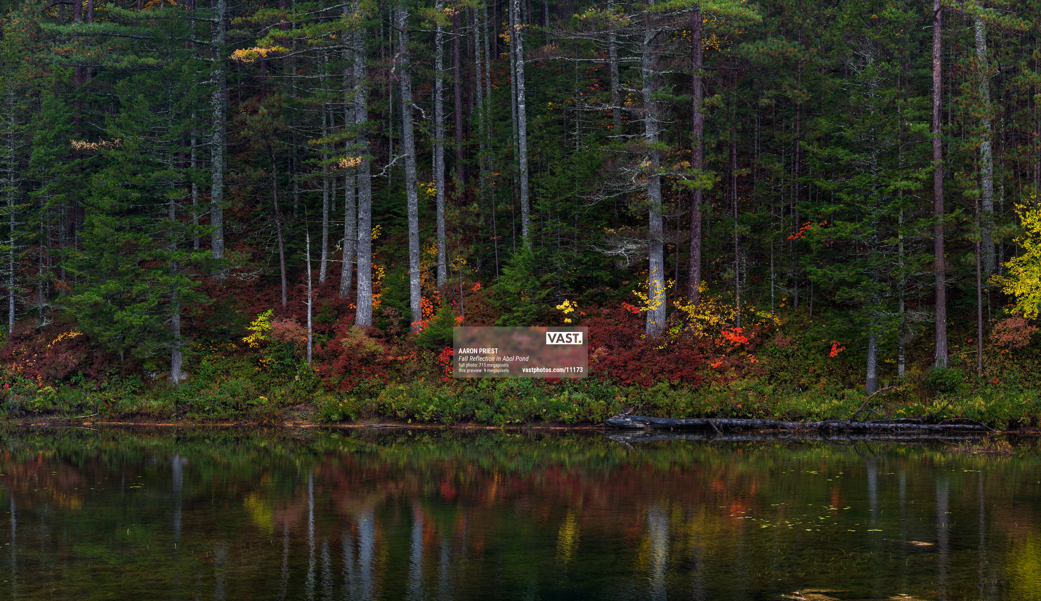 Fall colors reflect in Abol Pond from the Park Tote Road in Baxter State Park, Maine. Focus stacked and stitched from 74 images.