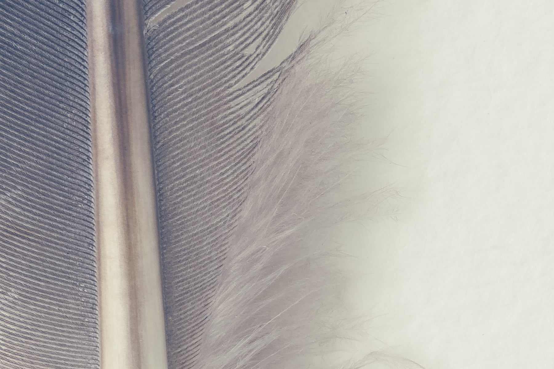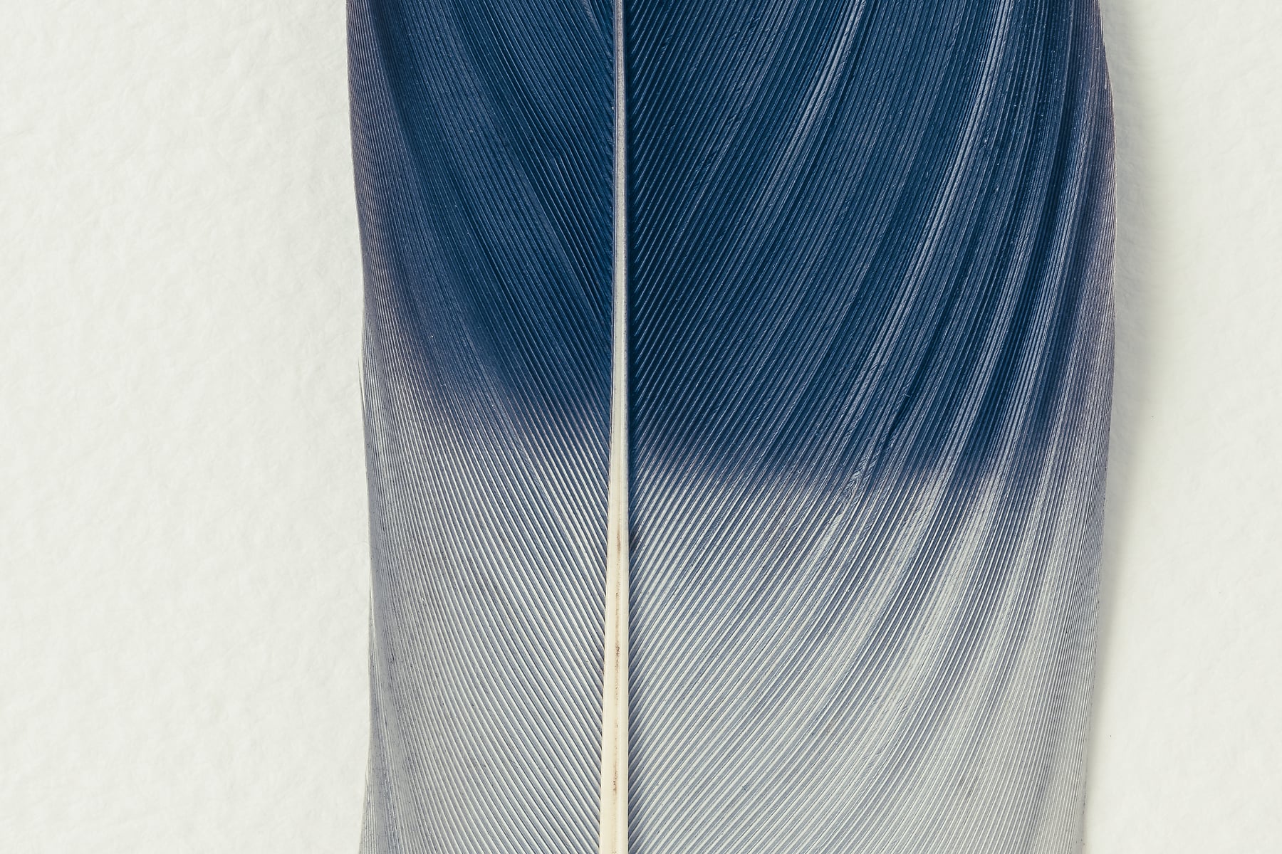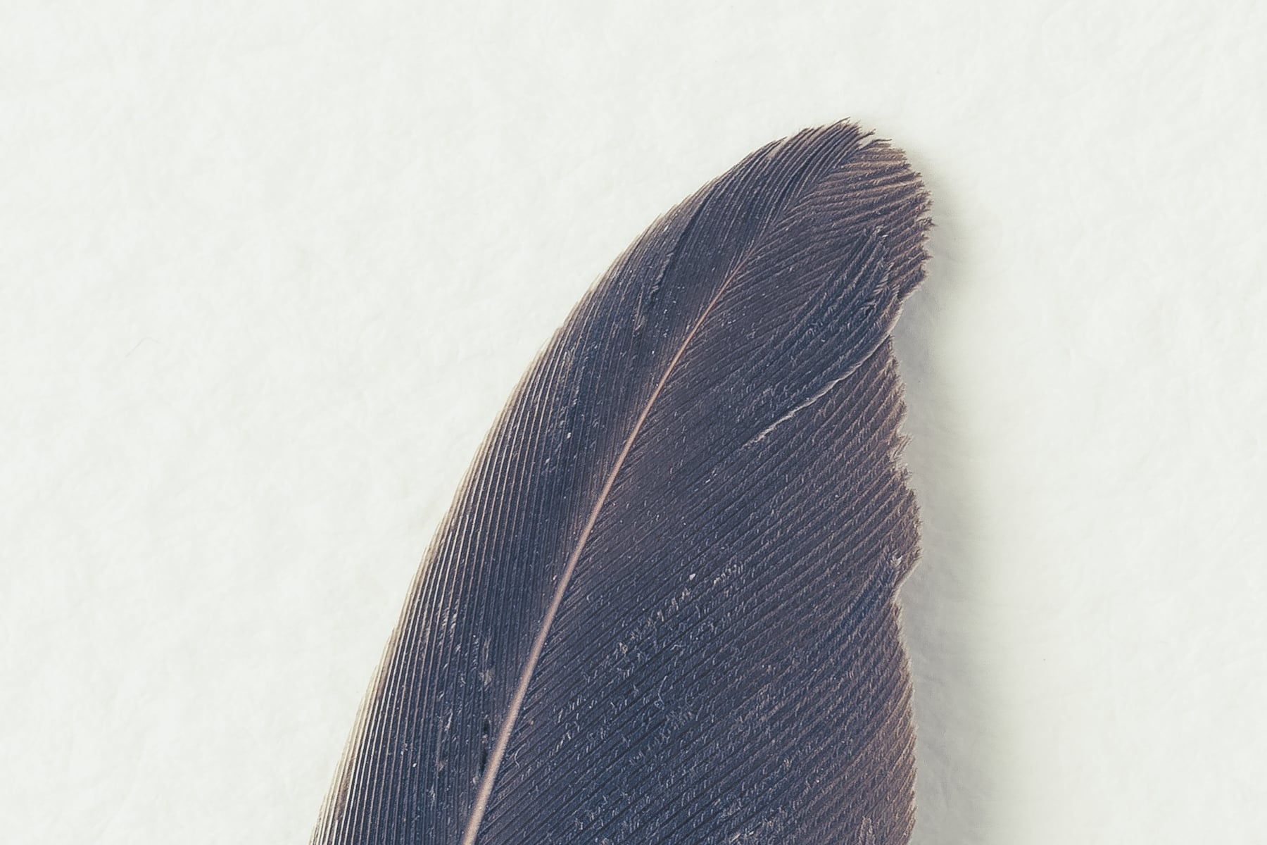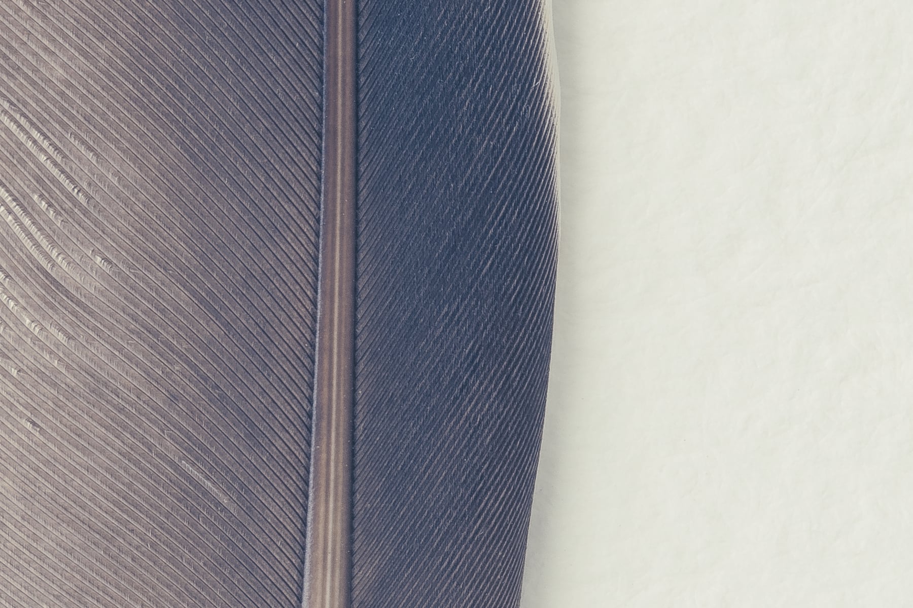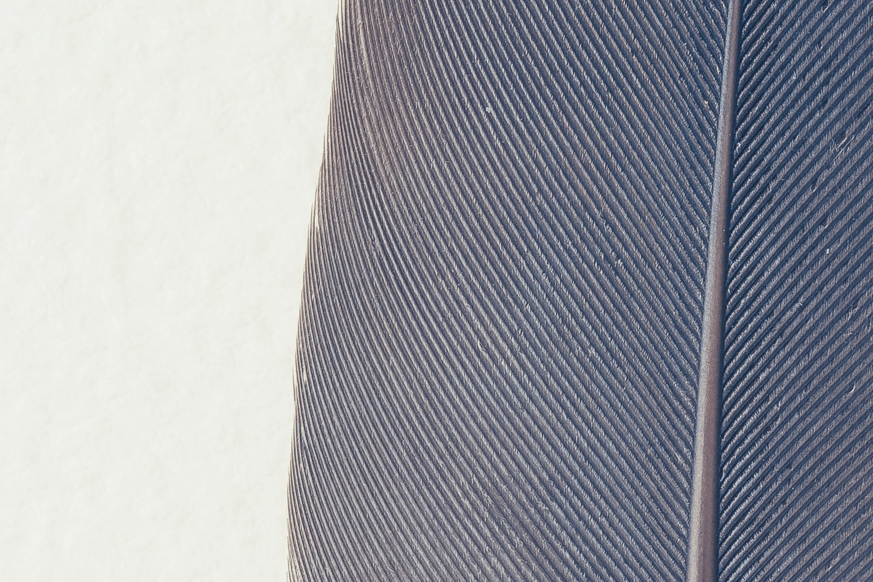 Discover the captivating beauty of a row of feathers in this stunning photograph. Captured from above on watercolour textured paper, the feathers are presented in muted grey tones, creating a sophisticated and monochromatic composition. The high-resolution image allows viewers to admire the intricate details and textures of the feathers with remarkable clarity.