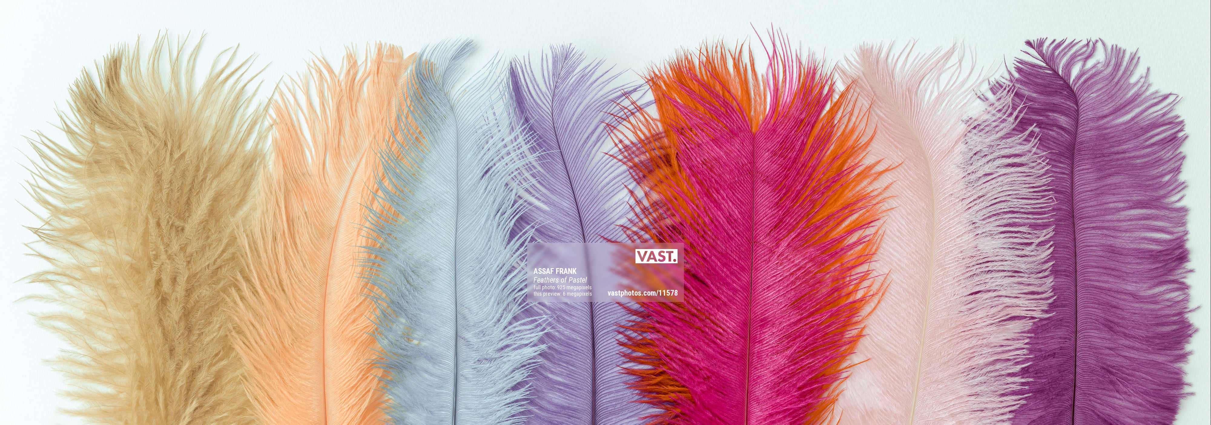 Immerse yourself in the exquisite beauty of a row of multicoloured Ostrich Feathers captured in this stunning photograph. The feathers, overlapping each other, showcase a delicate array of pastel hues, creating a soothing and tranquil ambience. Feel the softness of the feathers and embrace the gentle colours that bring a sense of calmness and serenity to any room, complementing your interior with grace.