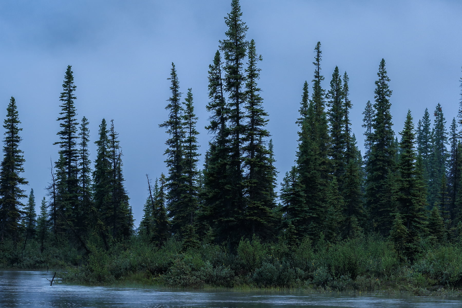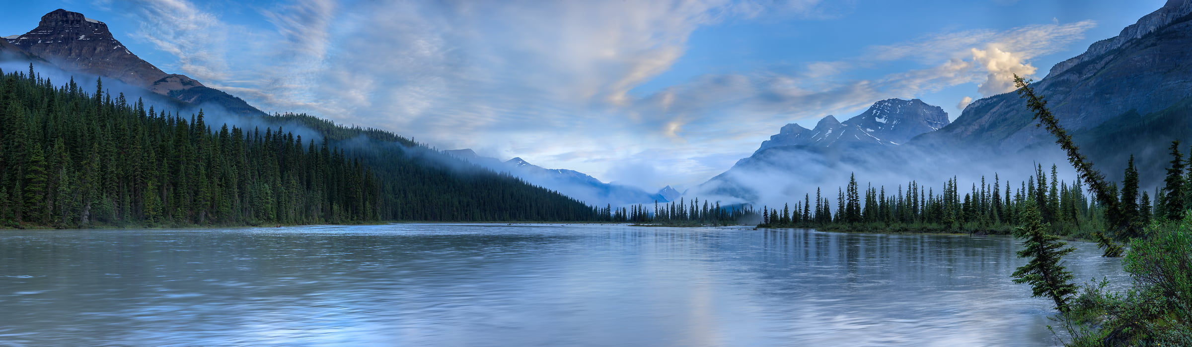 This VAST photo was captured just north of Rampart Creek along the North Saskatchewan River in Banff National Park. The river is usually low and sifts course across braided channels in this area, but on this occasion, it was at its peak, spilling over the walking path all along the river.