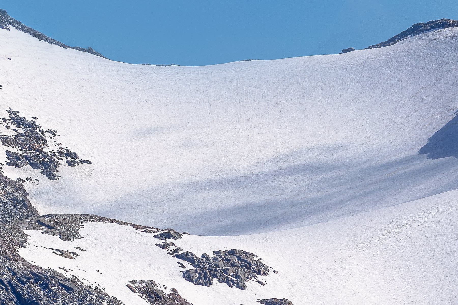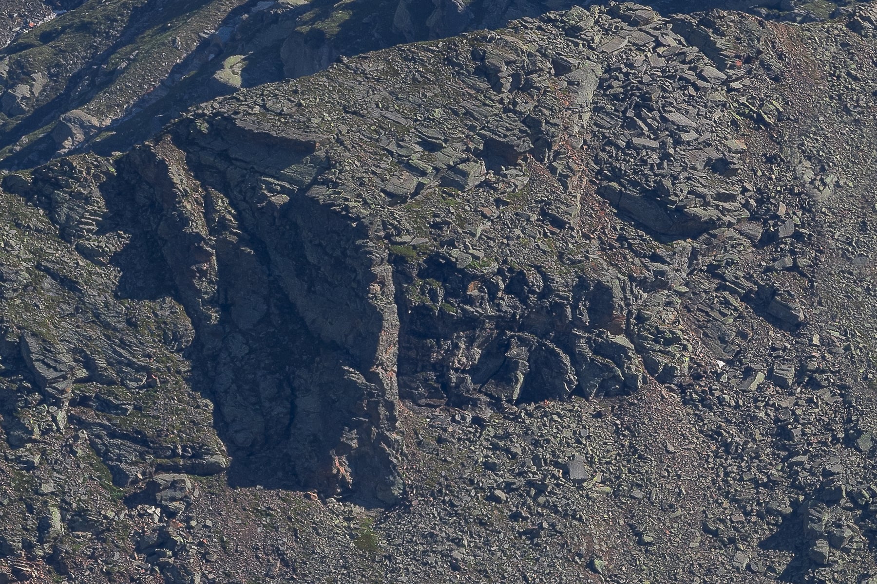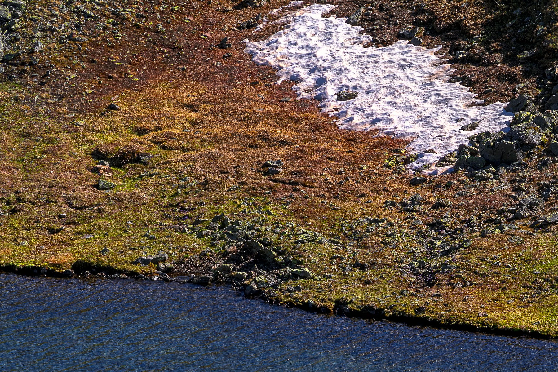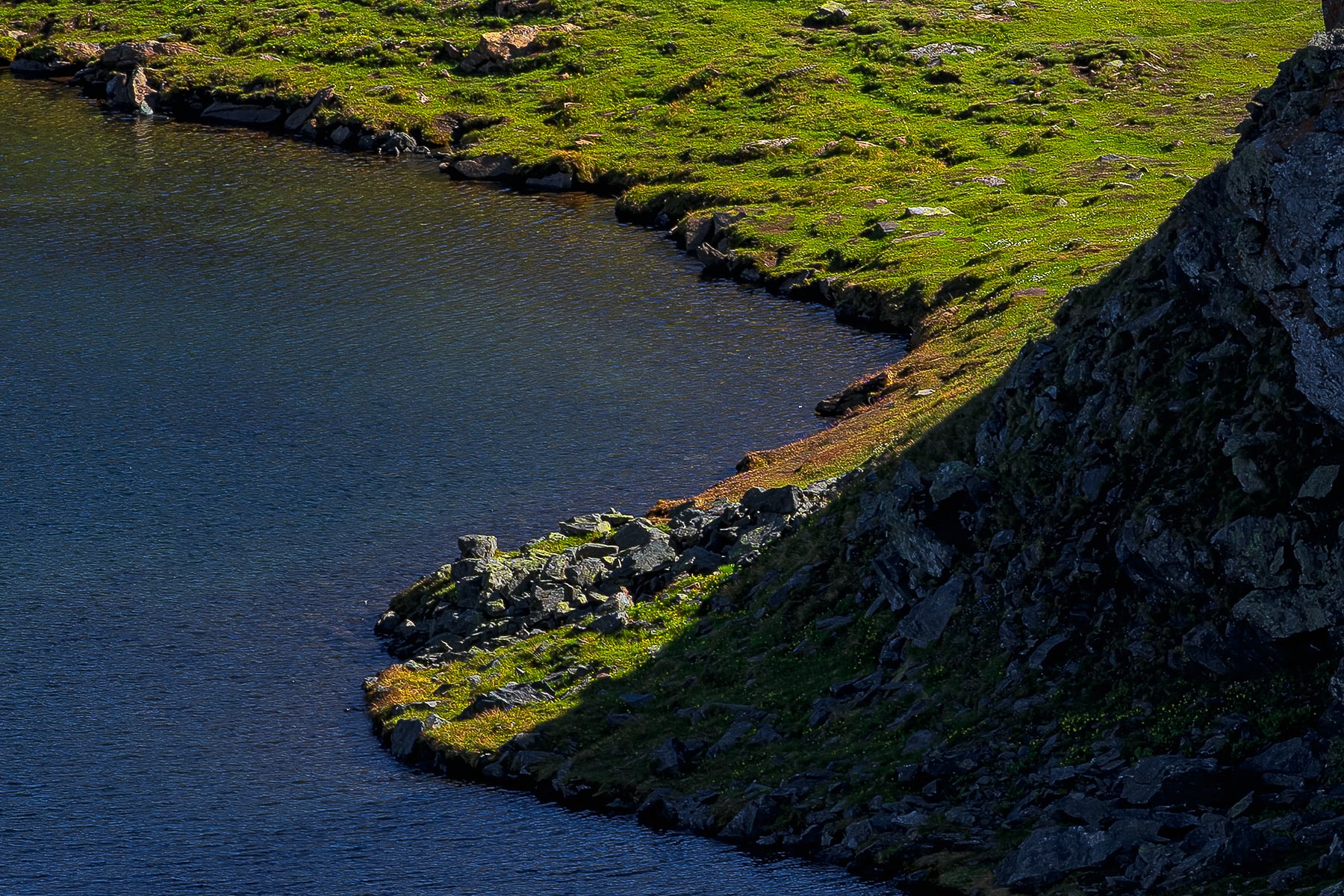 The observation point I chose to create my image allows you to see the entire wonderful lake of Rosset, located at 2701 meters above sea level, which has the particularity of possessing a small islet, located a very short distance from the shore, in the northern part, and connected by a rocky ford (in the photo you will see some hikers crossing it).