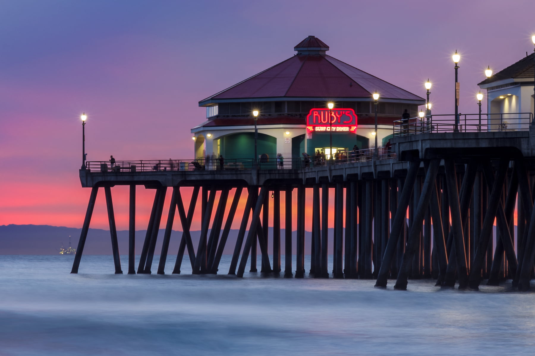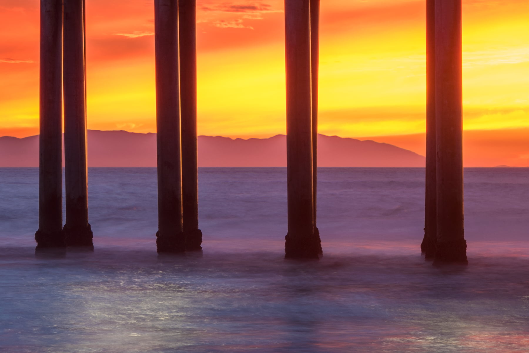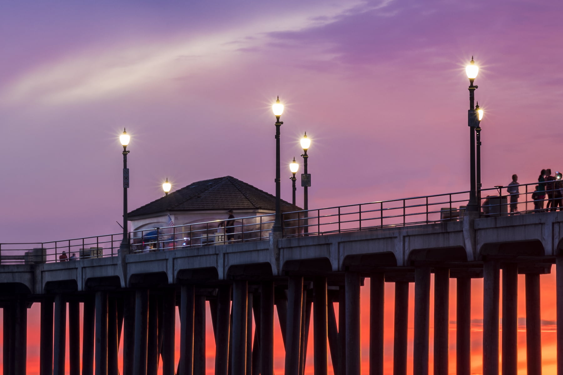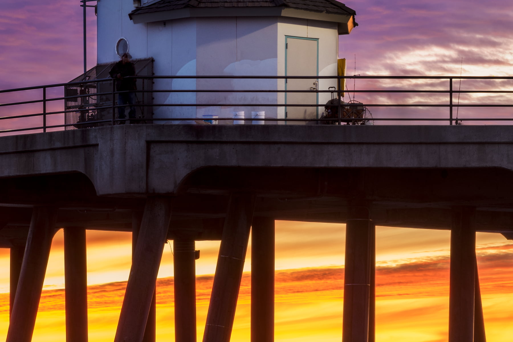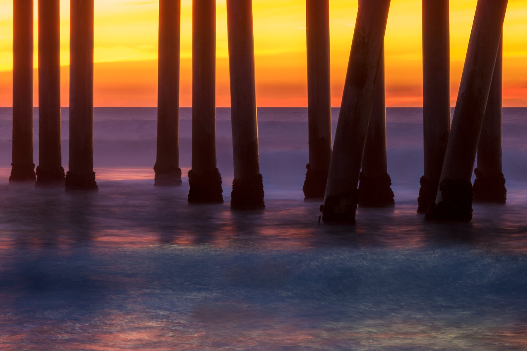 I have chased the sunset down to the ocean about ten miles from my home no less than 20 or 30 times, only to have “nothing happen.” This day was different. The sky and the clouds looked promising throughout the afternoon and it seemed worth the effort to make the longer drive to Huntington Beach to photograph perhaps our most iconic Southern California beach subject.