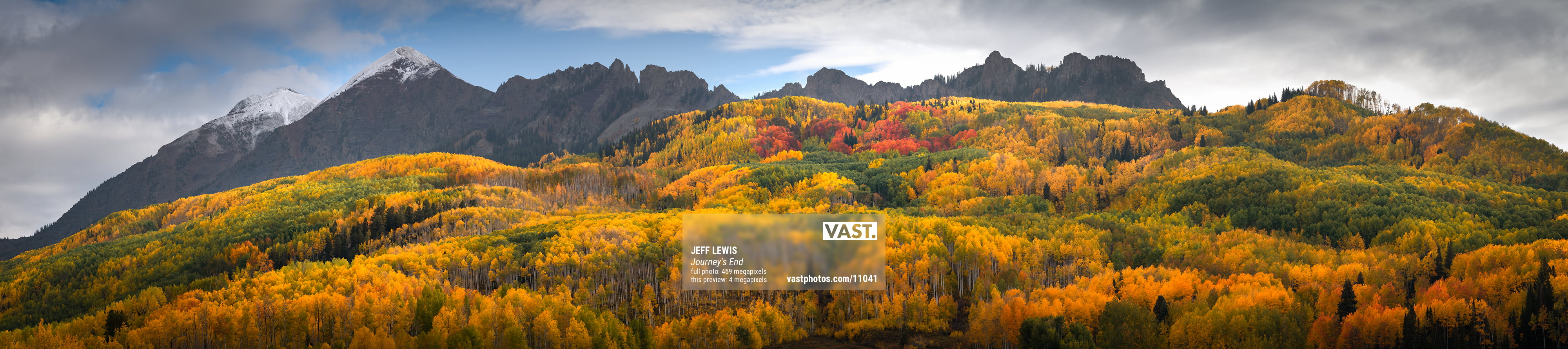 This particular location near Kebler Pass is certainly no secret, but it offers an unparalled experience of fall color viewing. With wispy clouds and a dusting of snow on the peaks, it was the perfect opportunity to capture the expanse of brilliant fall colors -- in a way that only a VAST photo can!