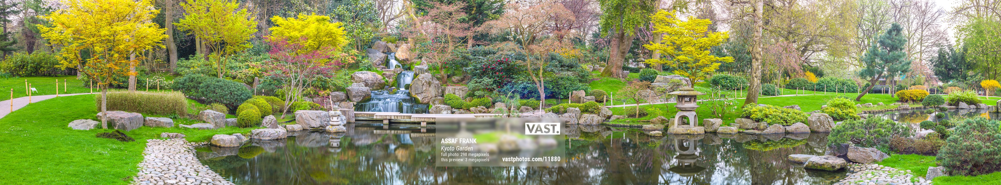 This panoramic image captures the serene beauty of the Kyoto Garden located in Holland Park, London. The Kyoto Garden, a stunning example of a traditional Japanese garden, offers a tranquil oasis in the heart of the bustling city. The meticulously landscaped garden features a harmonious blend of vibrant foliage, delicate blossoms, and thoughtfully placed rocks and stones, creating an atmosphere of peace and relaxation.