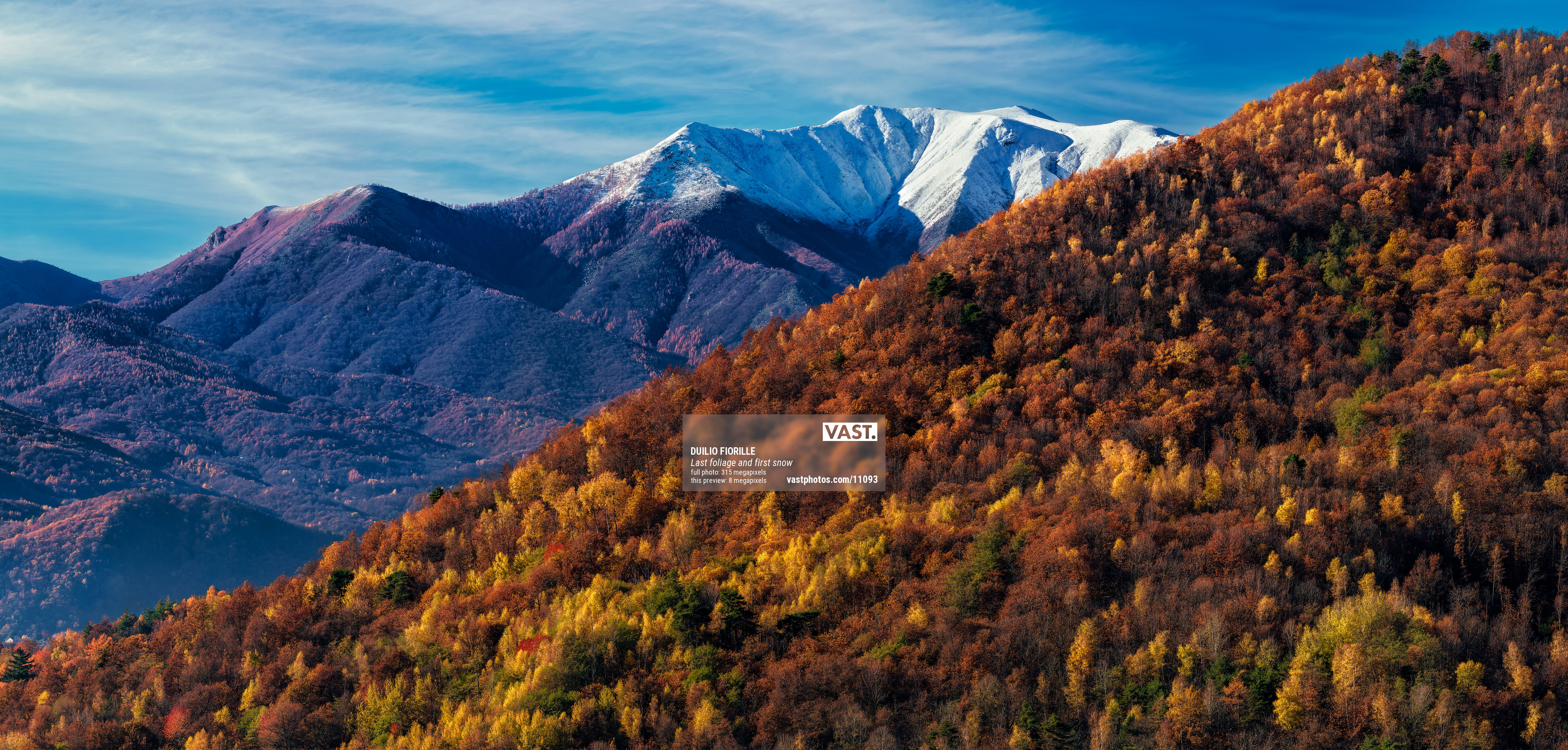 This VAST photo was taken from my house, in a little middle mountain village in the North West of italian Alps. The night before there was the first snow on the mountains top and the trees were in very last autumn foliage before loose all the leaves.