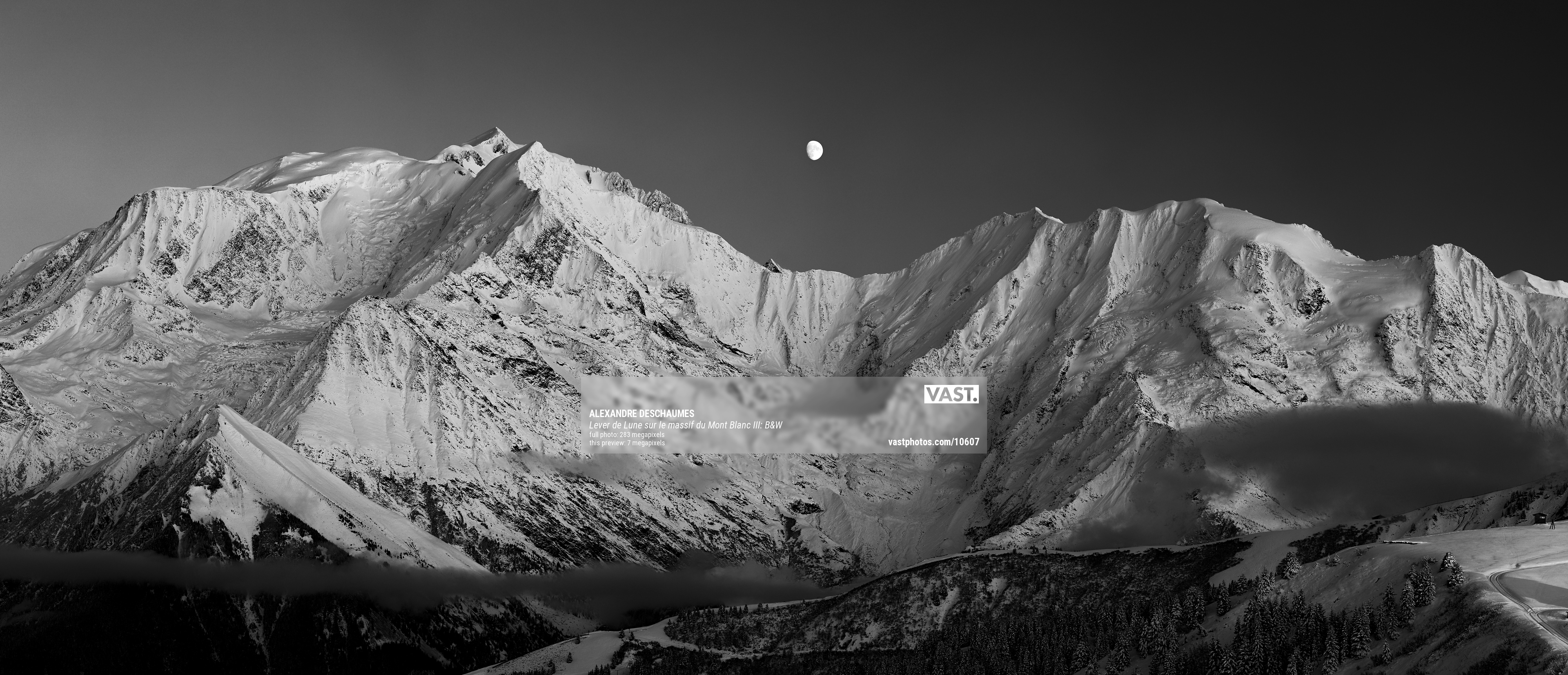 Full Moon rising at blue hour above Mont-Blanc and Domes de Miage