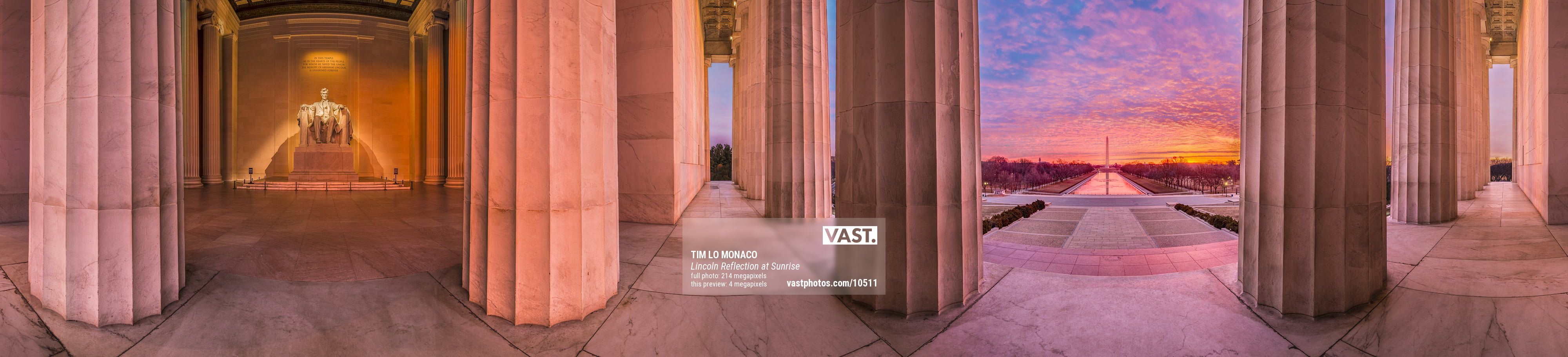 The full circle of this single row panorama makes for the initial feel that it was shot with a wide-angle lens but leaves the viewer, many of whom have visited the Lincoln Memorial, wondering where or how exactly this image was taken. The moment of realization that the marble statue of Lincoln and the Reflecting Pool with the Washington Monument are actually opposite each other fascinates me to this day. I enjoy how this method makes for a surreal feel while still being a fairly straightforward image.