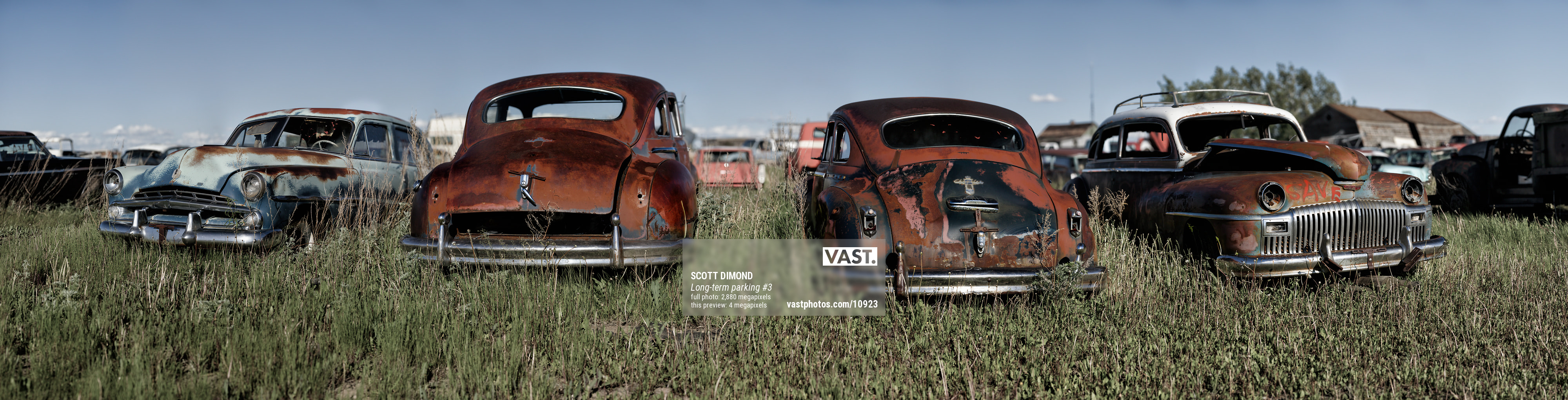 Scott Dimond's Long-term Parking series is a collection of ultra-high-resolution VAST photos of classic cars distinguished by the passage of time. Having rested, abandoned for decades, the cars are patiently waiting to be selected for refurbishment or perhaps to have some of their parts contribute to the refurbishment of other cars.
