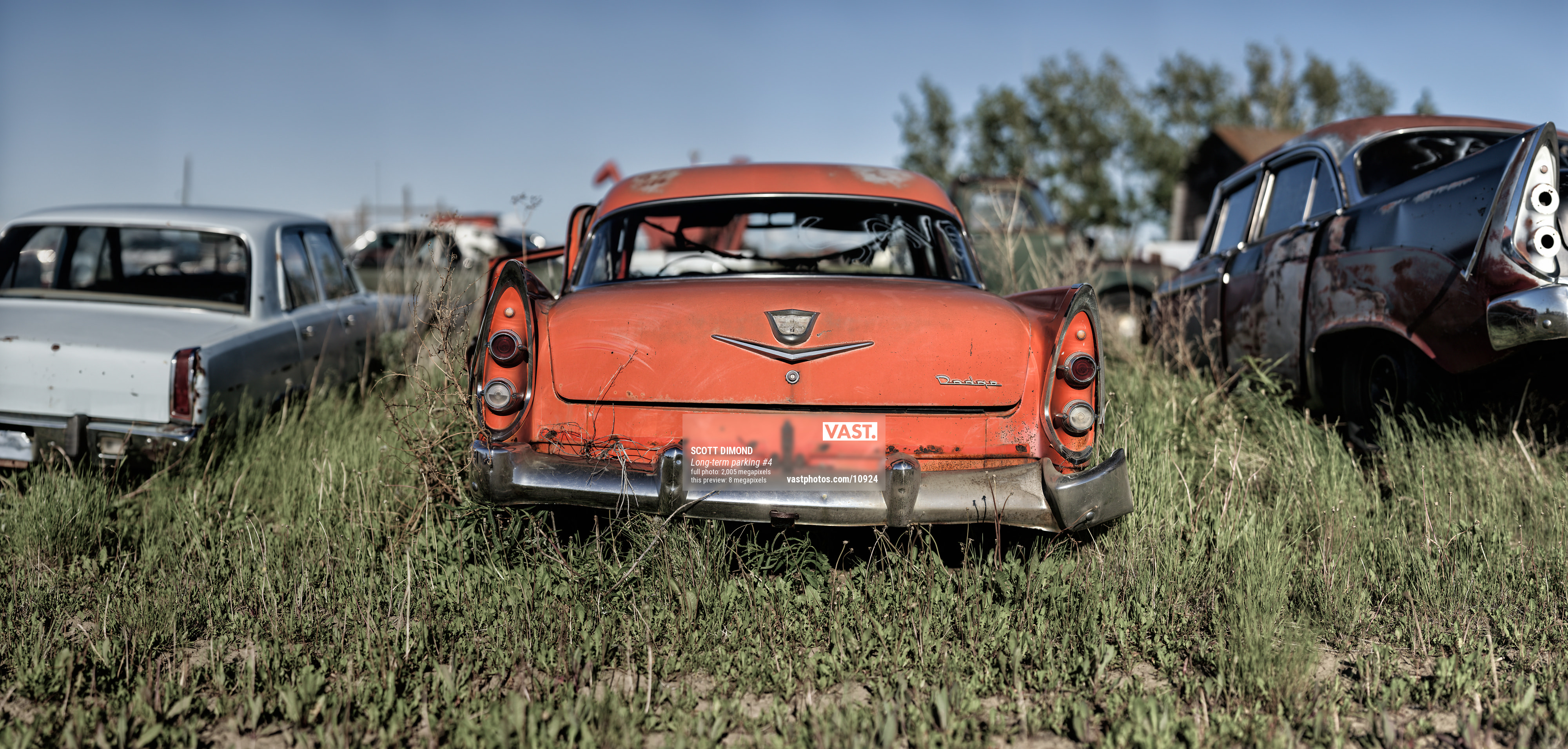Scott Dimond's Long-term Parking series is a collection of ultra-high-resolution VAST photos of classic cars distinguished by the passage of time. Having rested, abandoned for decades, the cars are patiently waiting to be selected for refurbishment or perhaps to have some of their parts contribute to the refurbishment of other cars.