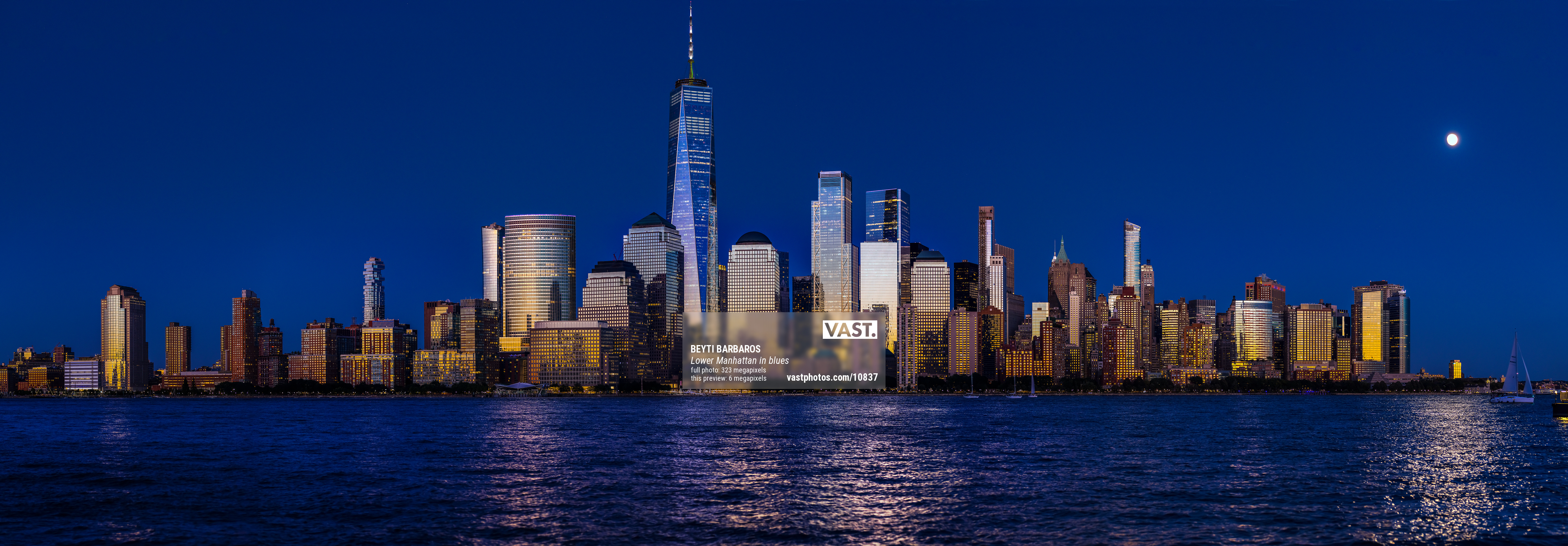 If you want to catch the amazing beauty of the Manhattan skyline, blue hours is your best chance. You have enough light to capture all the details of the skyscrapers and amazing light show mixed with blue of the coming night and yellow of the leaving sun. Another challenge with this view is you have too much water and sky that are basically empty spaces so while you are creating your panorama, you have to be careful not to miss any frame between moves.